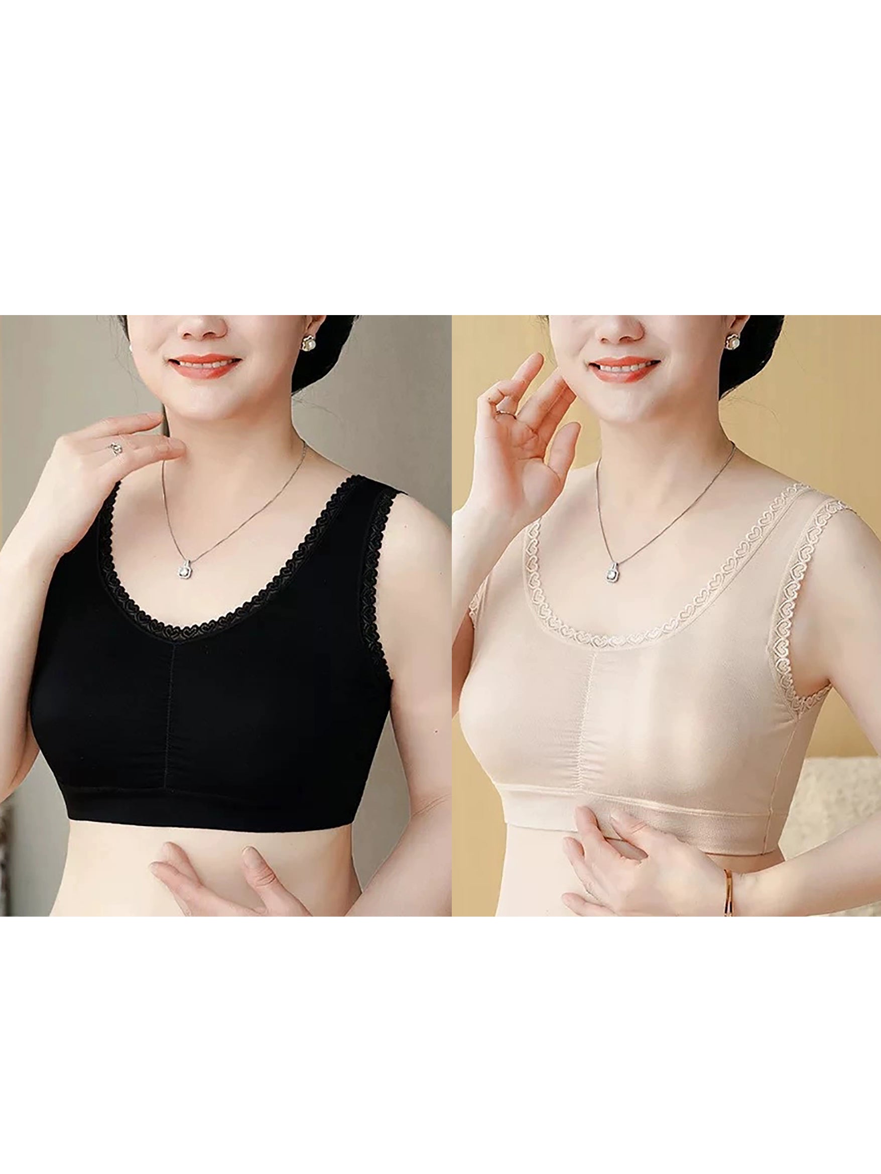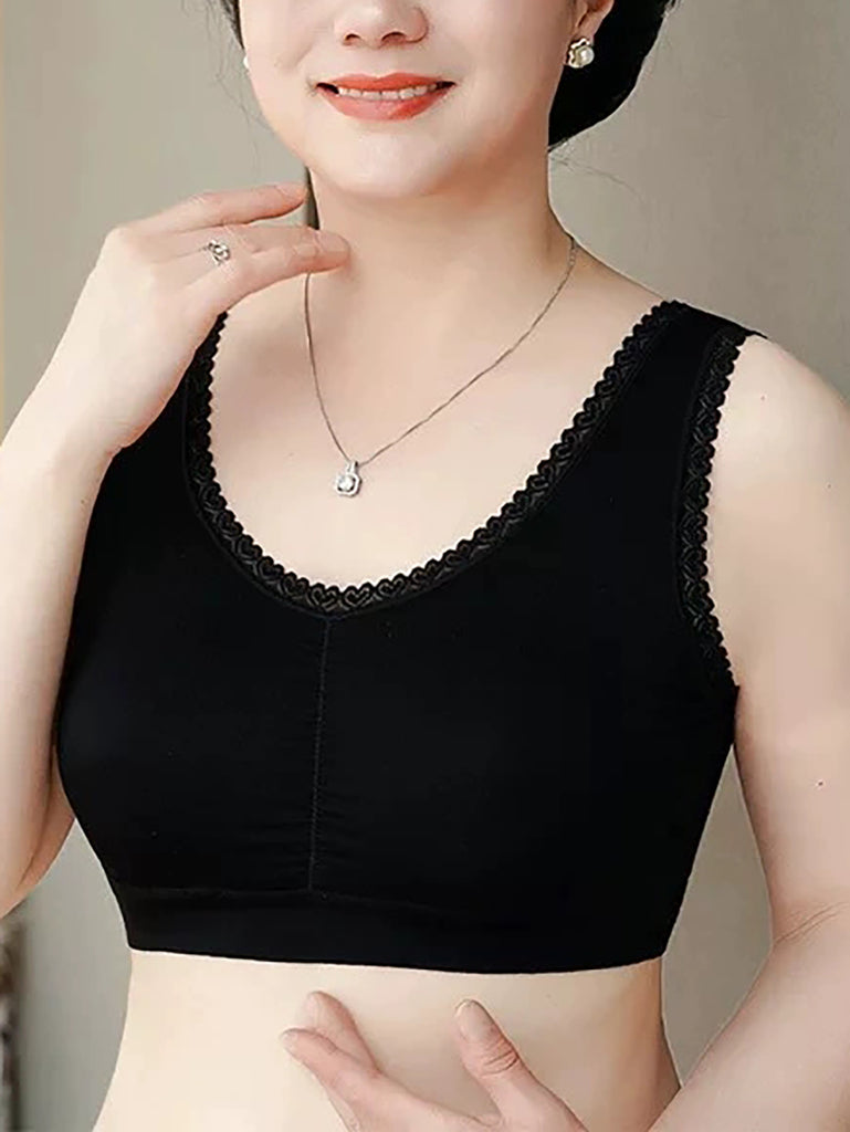 Women One-Piece With Bra Pad Lace Pure Color Bar