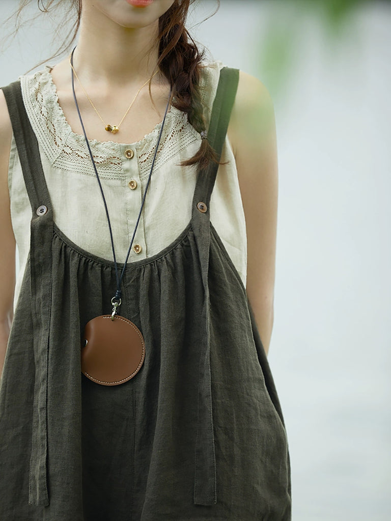 Plus Size Women Summer Retro Pure Color 100%Linen Jumpsuits