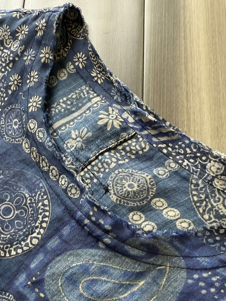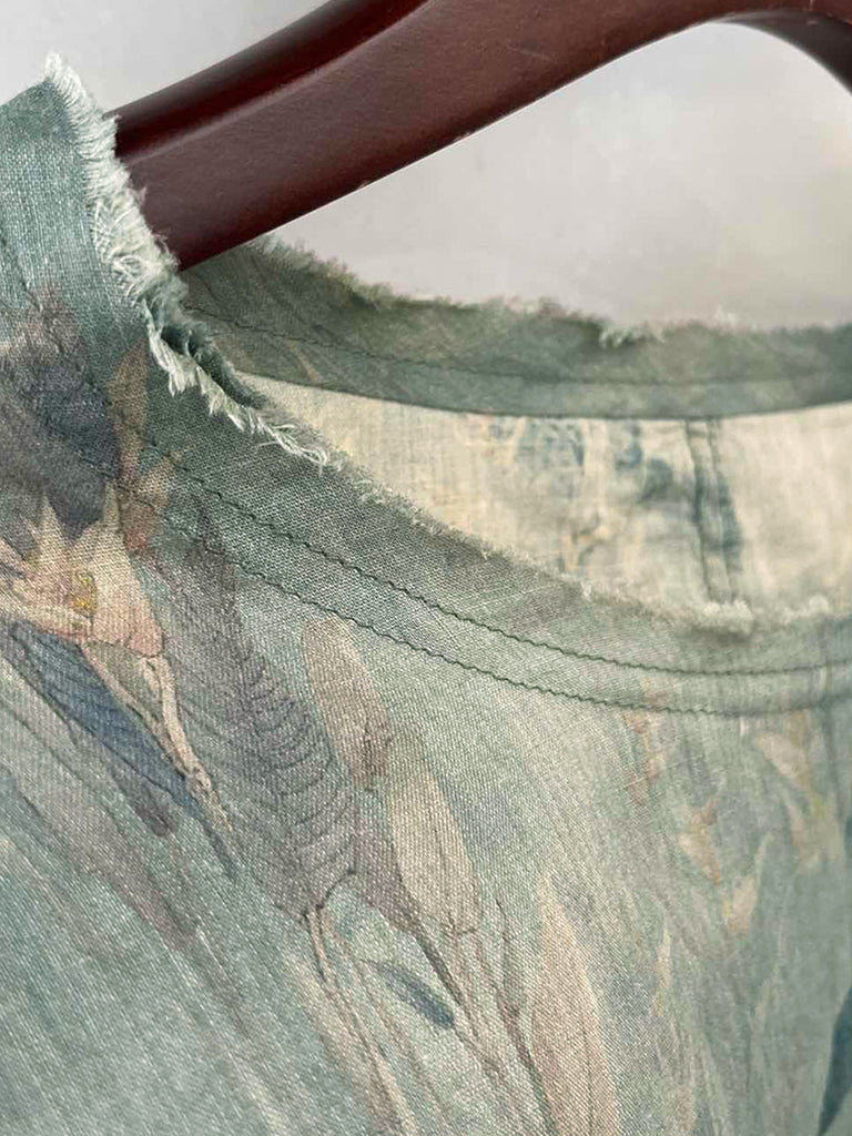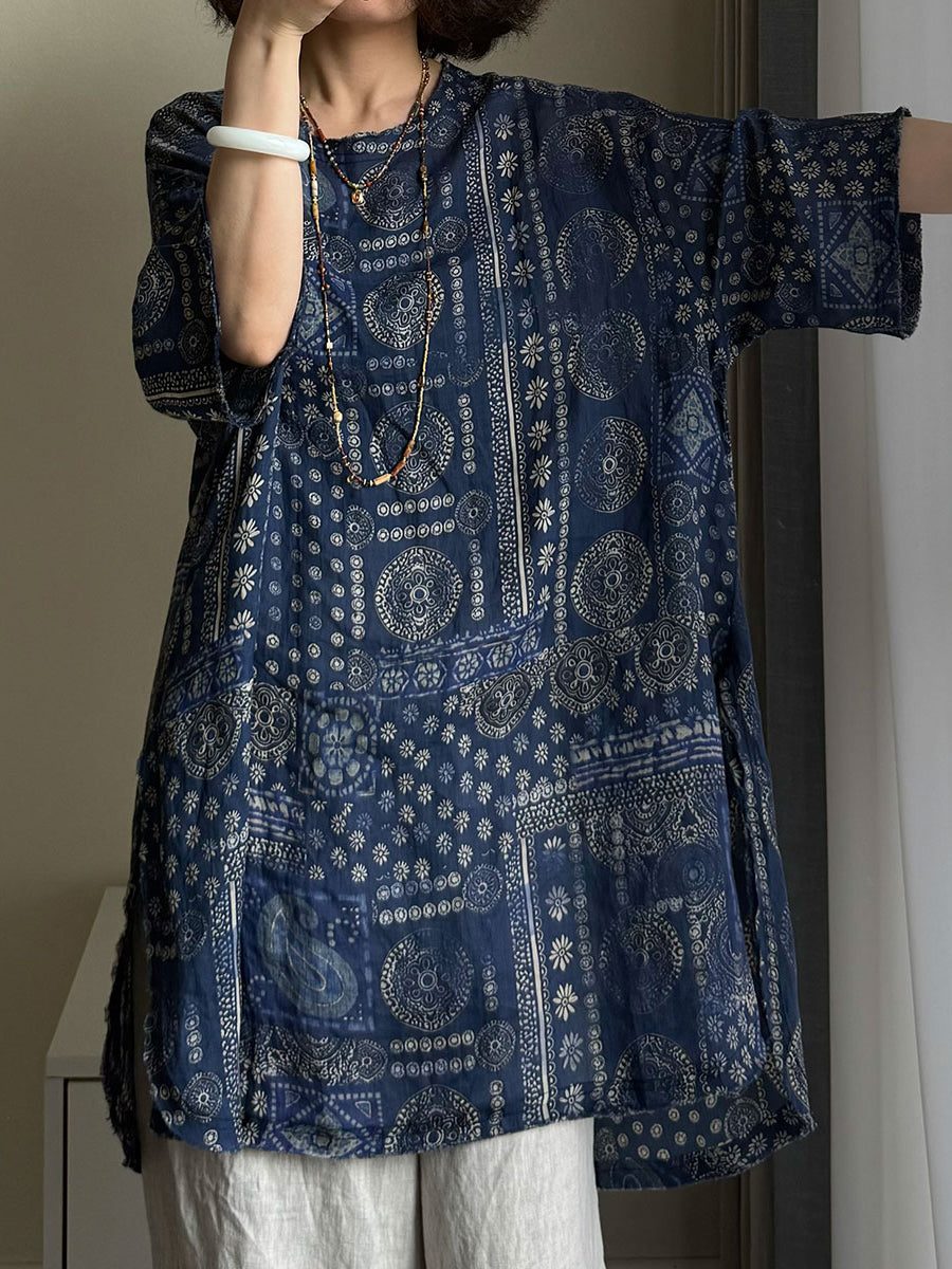 Plus Size Women Summer Vintage Flower O-neck 100%Raime Shirt