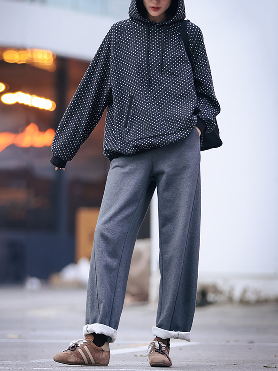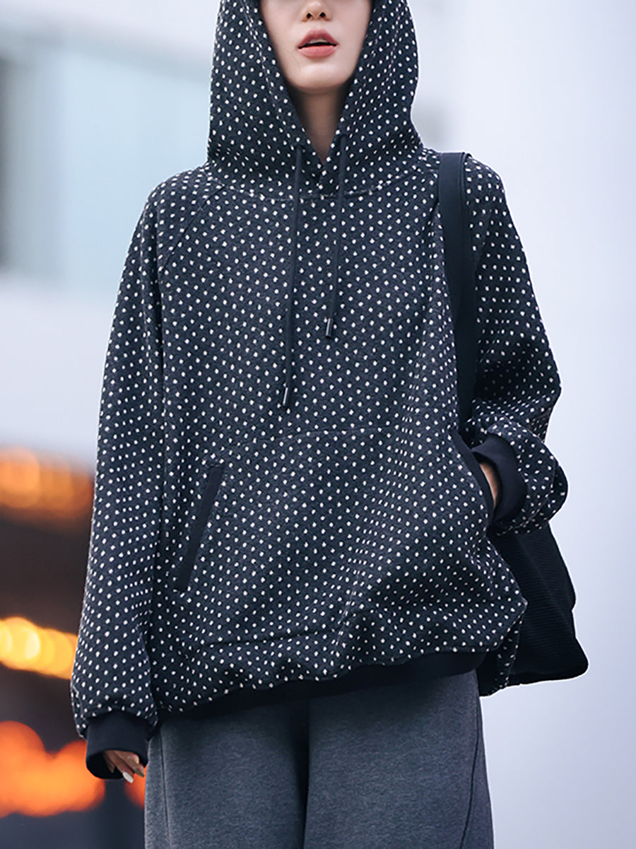 Women Winter Vintage Dot Hoodie