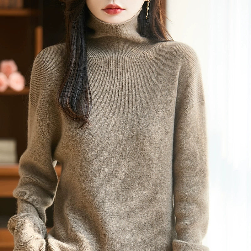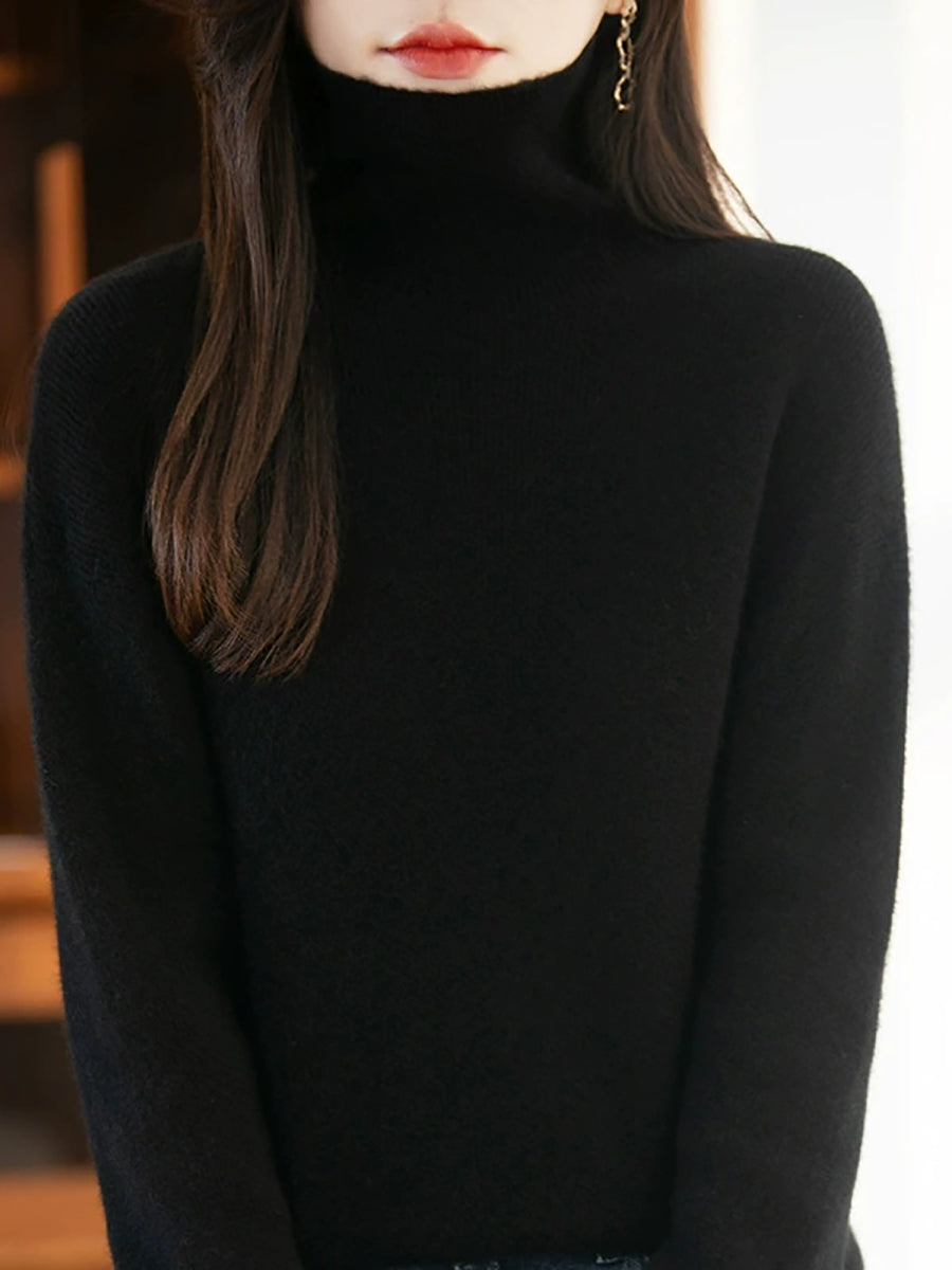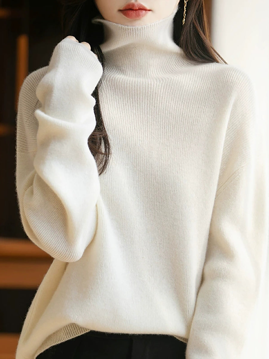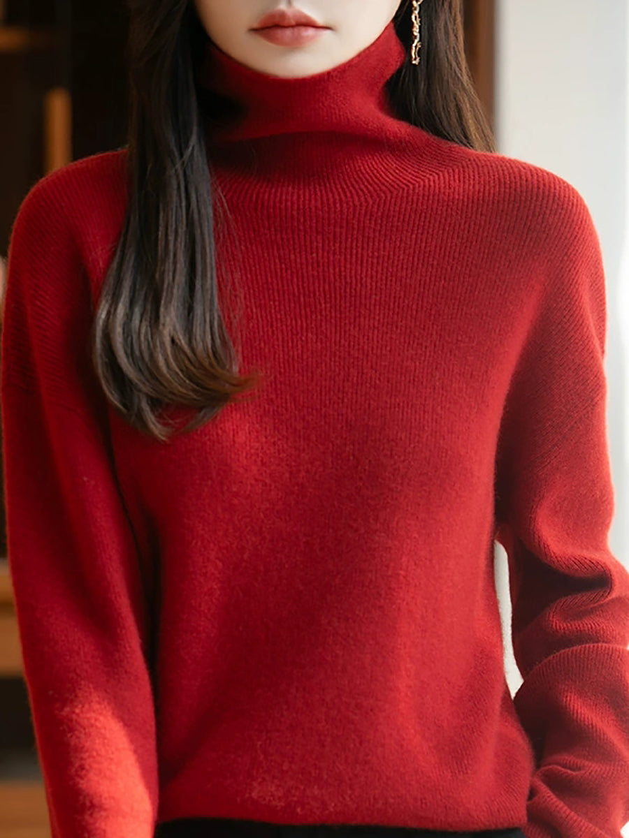Women Autumn Artsy Pure Color Wool Turtleneck Sweater