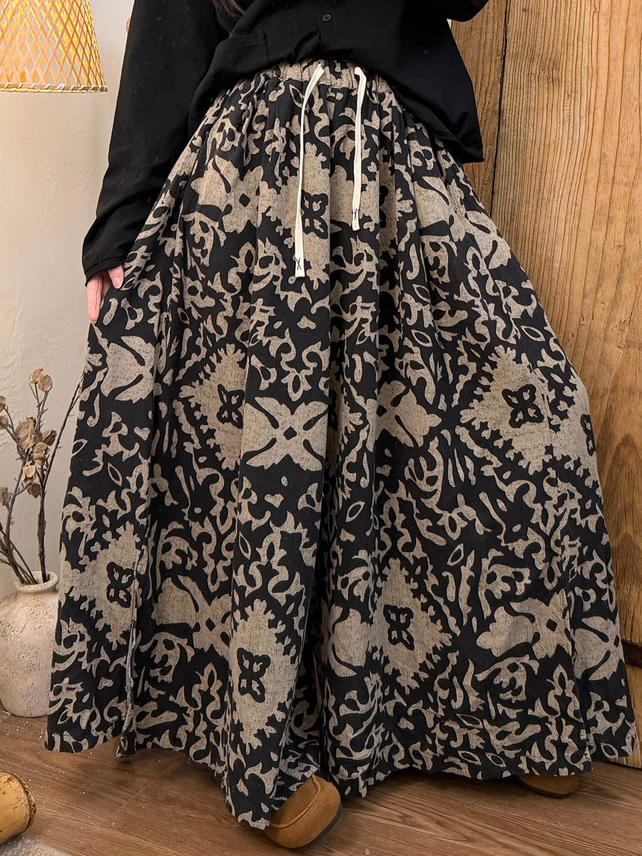 Plus Size Women Spring Retro Flower Maxi Skirt