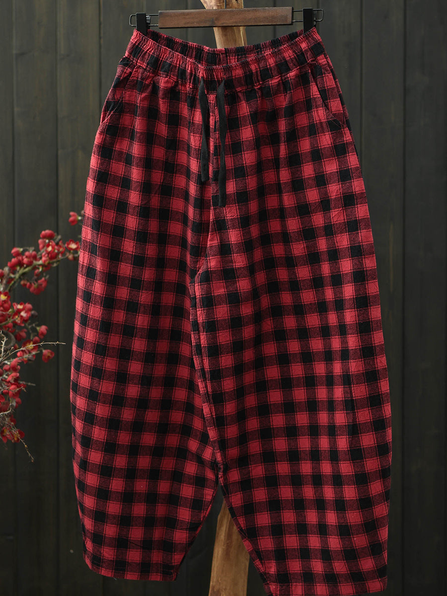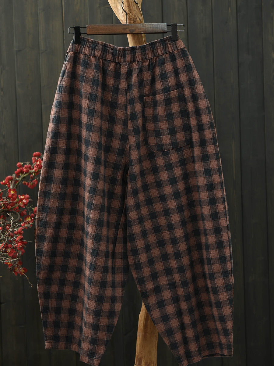 Women Summer Vintage Plaid Harem Pants