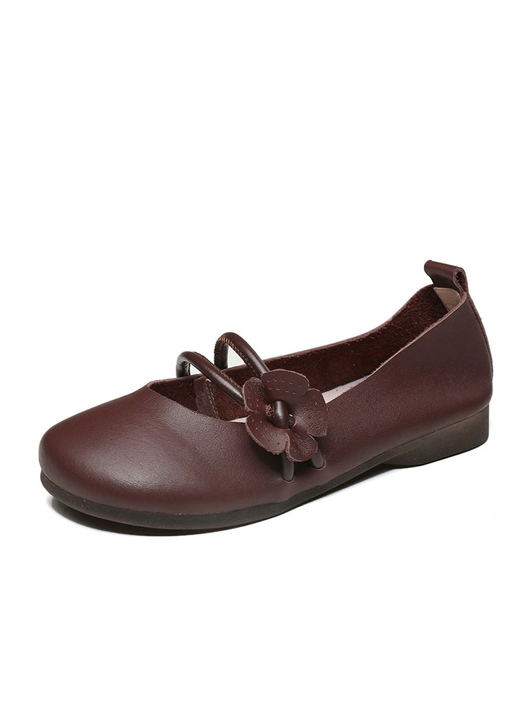 Women Artsy Soft Leather Flower Low Heel Shoes