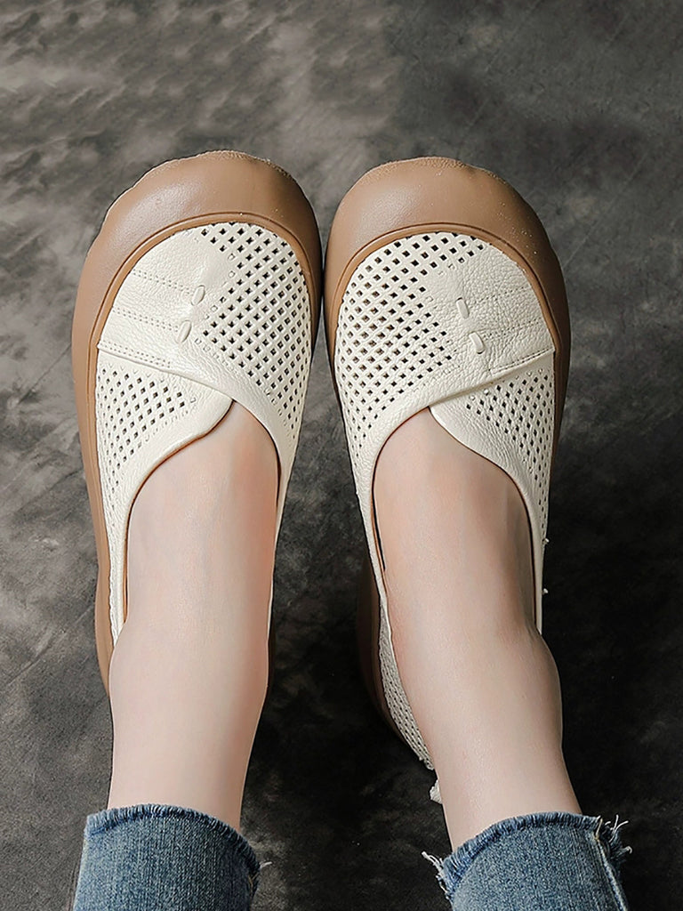 Women Summer Pure Color Leather Spliced Flat Shoes