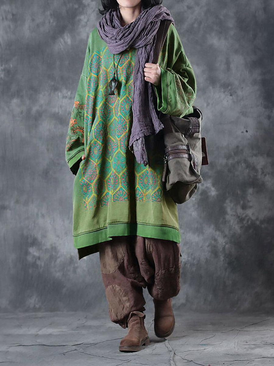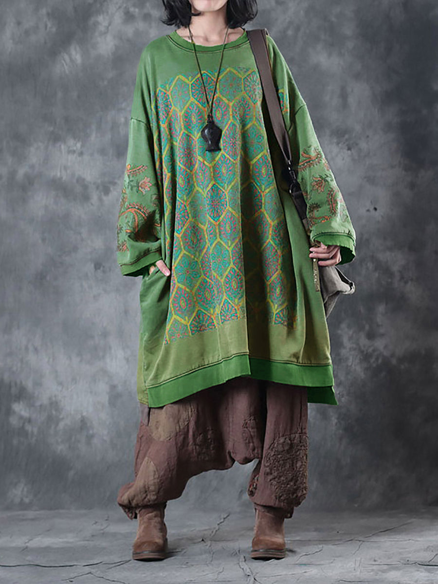 Crafted with high-quality cotton and adorned with a stunning flower pattern, this dress features a classic O-Neck collar and full raglan sleeves, perfect for the casual and cool autumn season.