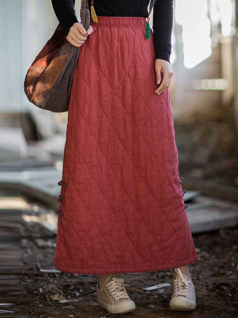 Women Autumn Ethnic Pure Color A-Shape Ramie Padded Skirt