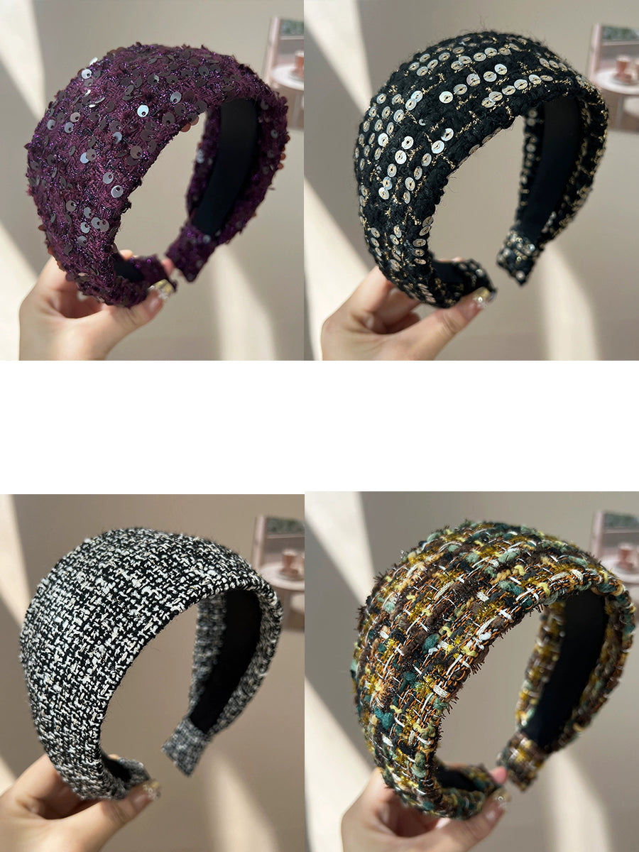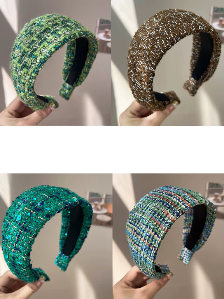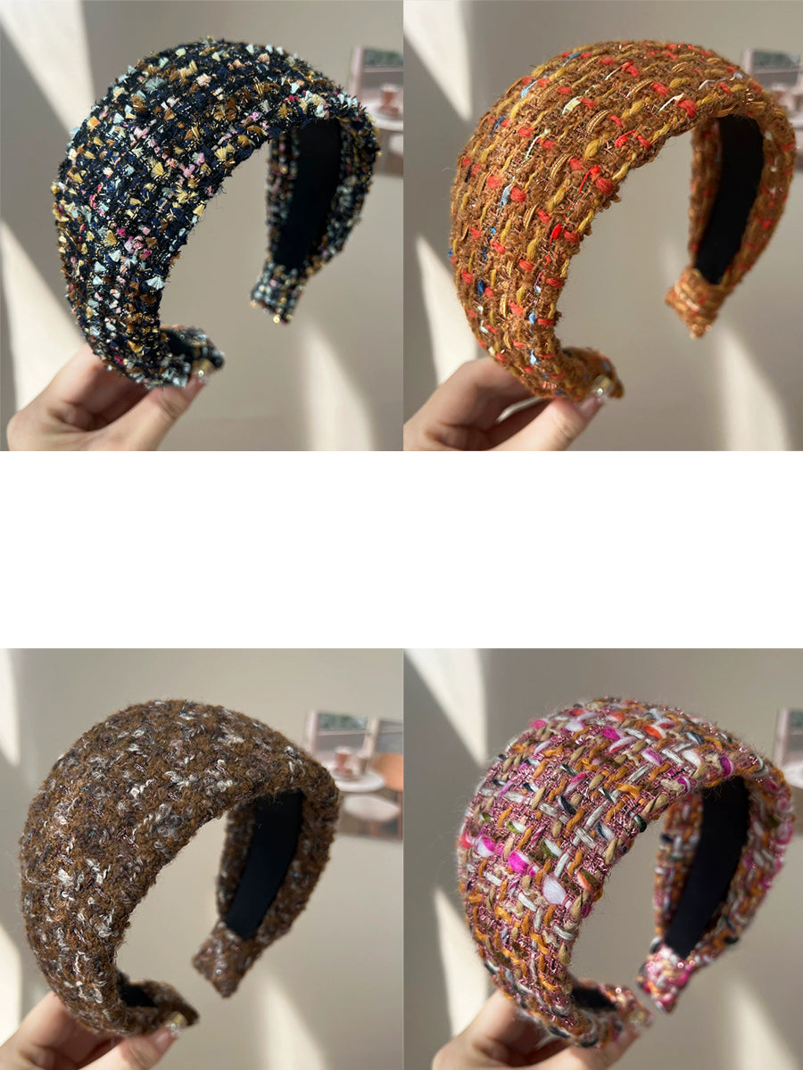 4 Pieces Winter Artsy Plaid Wide Hairband