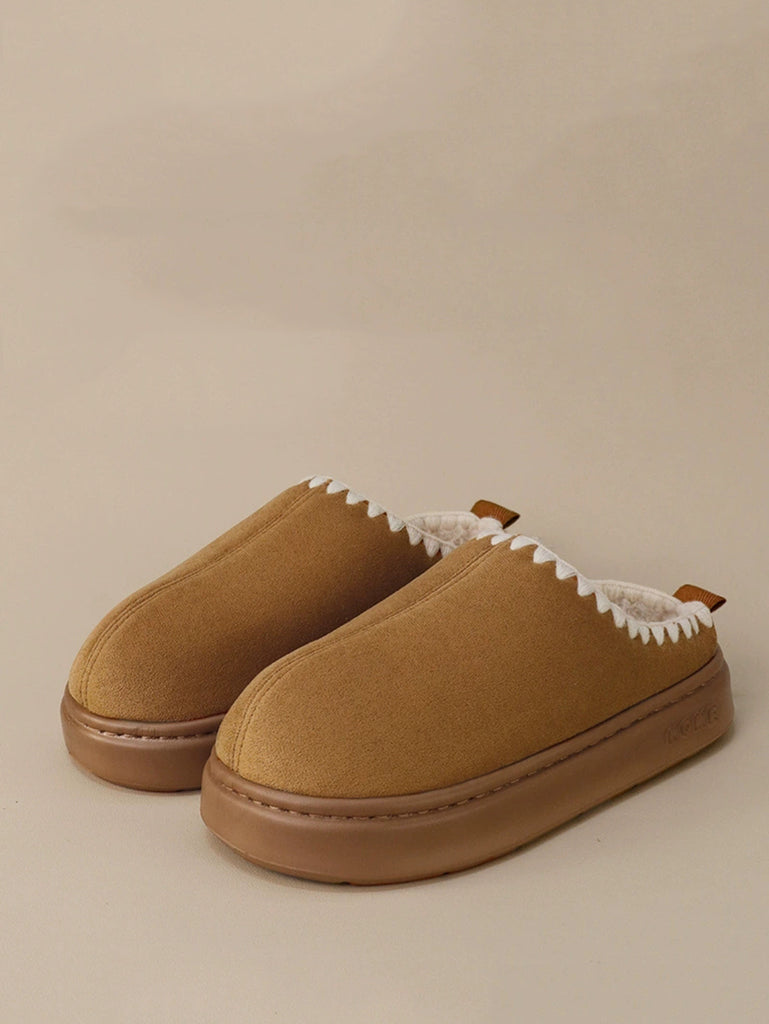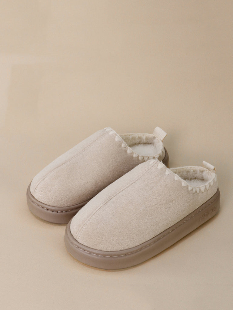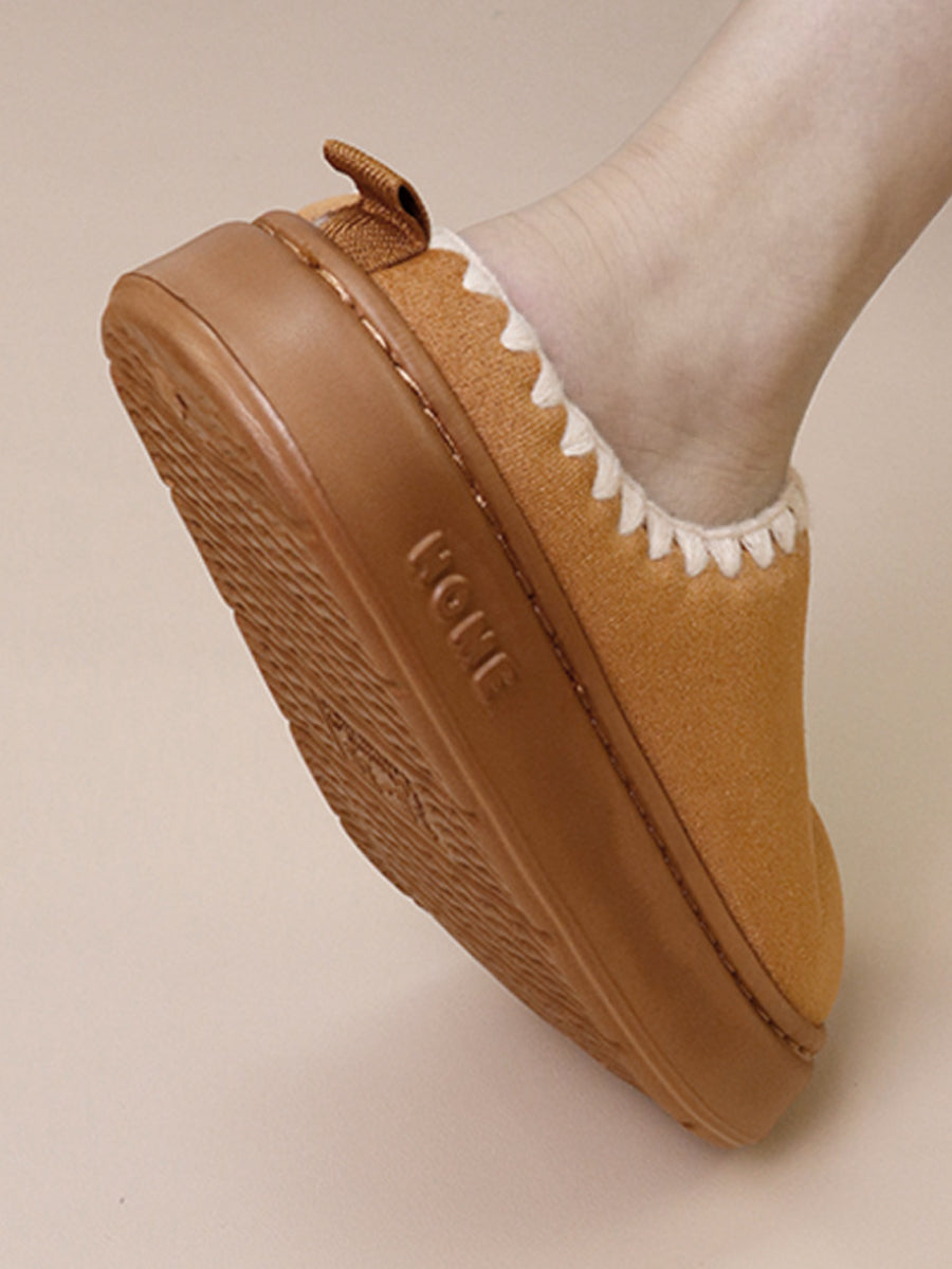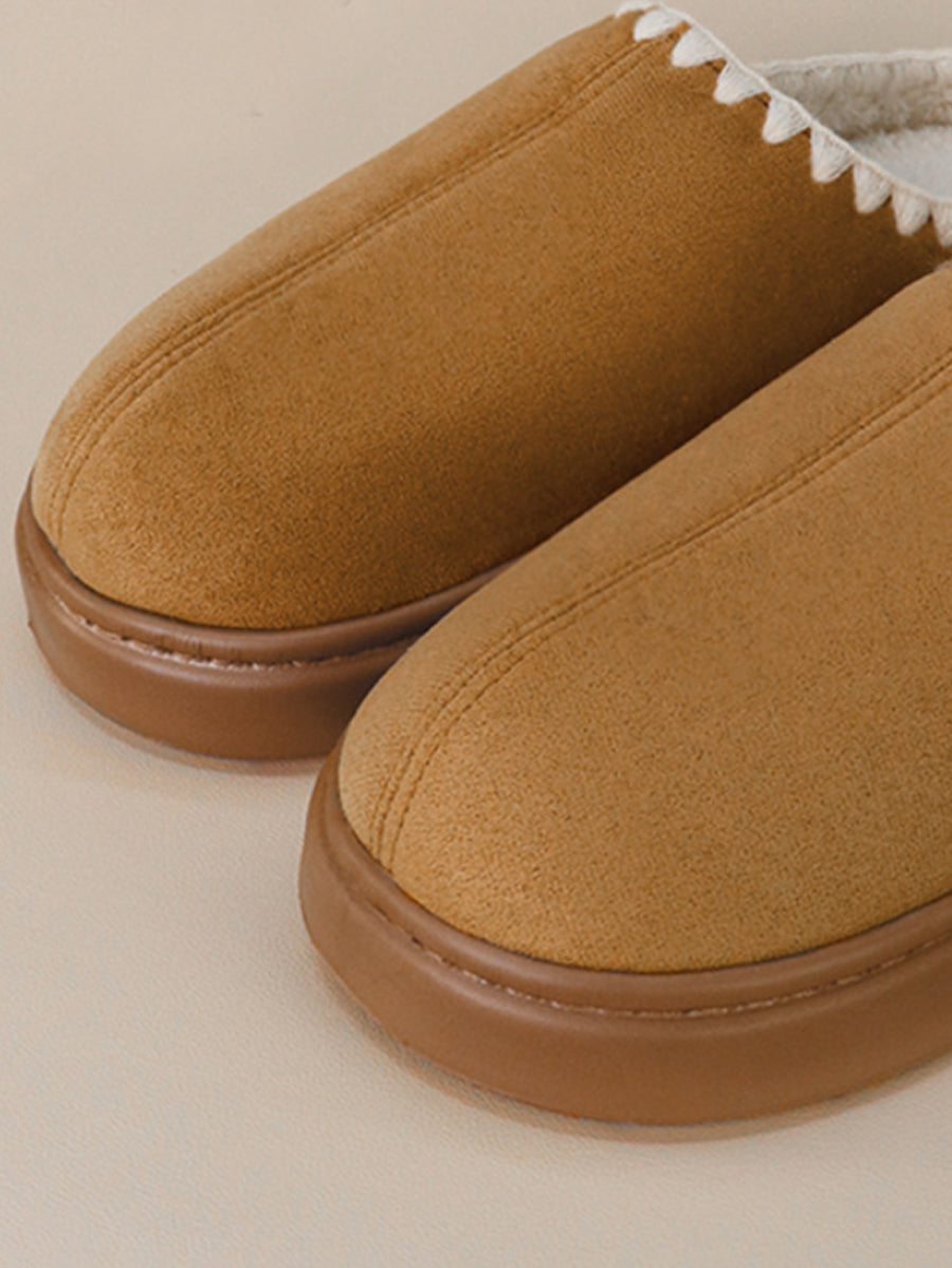 Couple Winter Casual Pure Color Fleece-lined Indoor Slippers