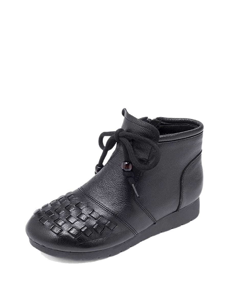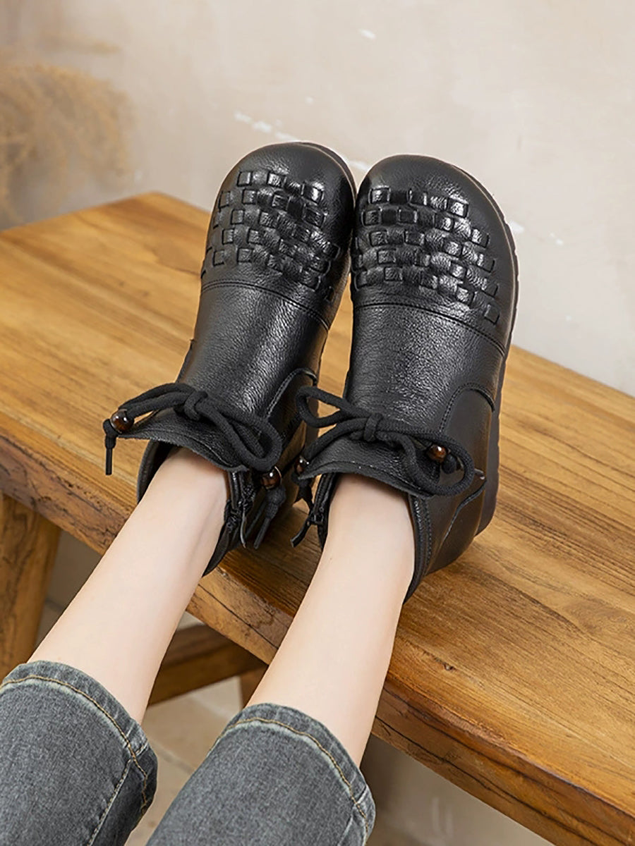 Women Vintage Genuine Leather Spliced Ankle Boots