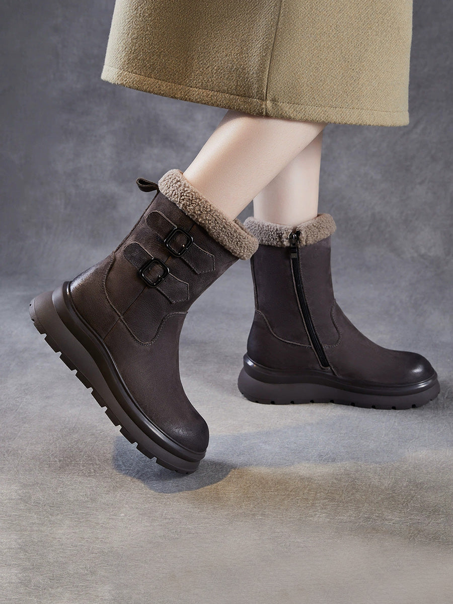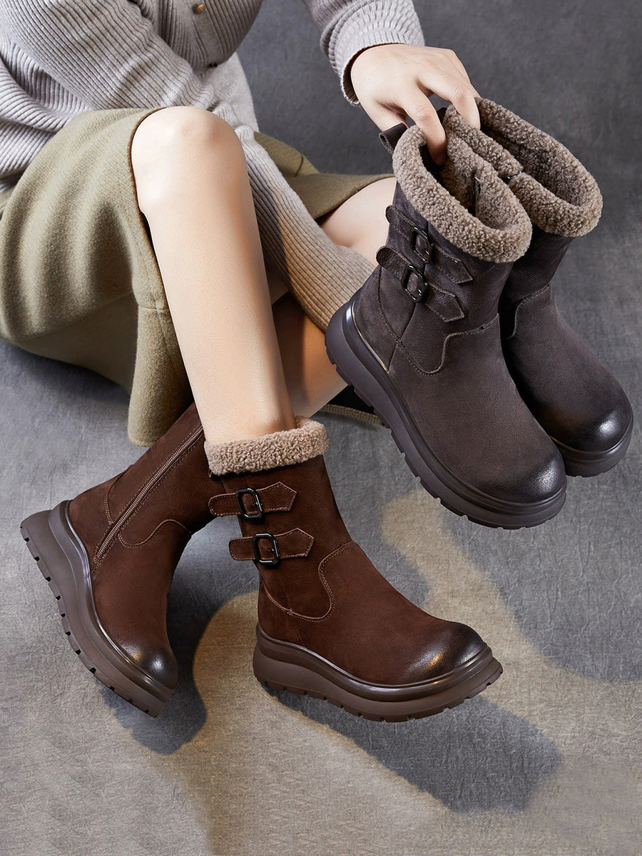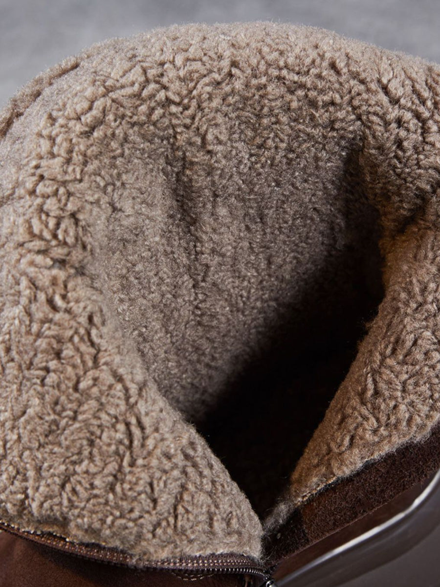 Women Winter Genuine Leather Fleece-lined Mid Heel Boots