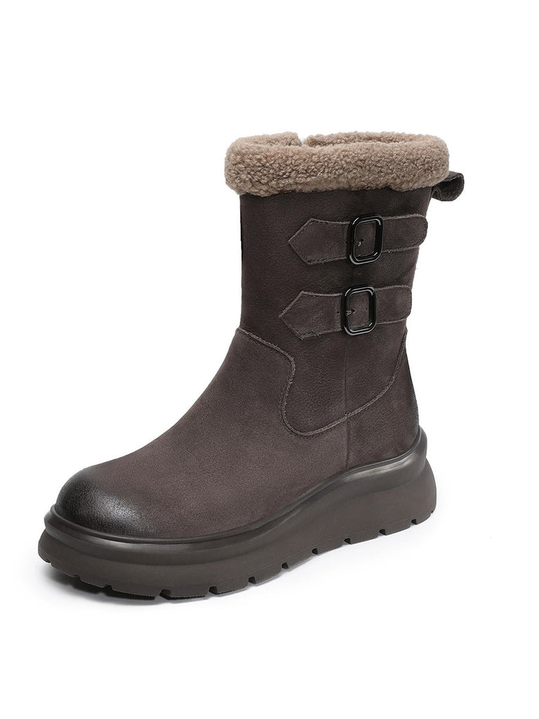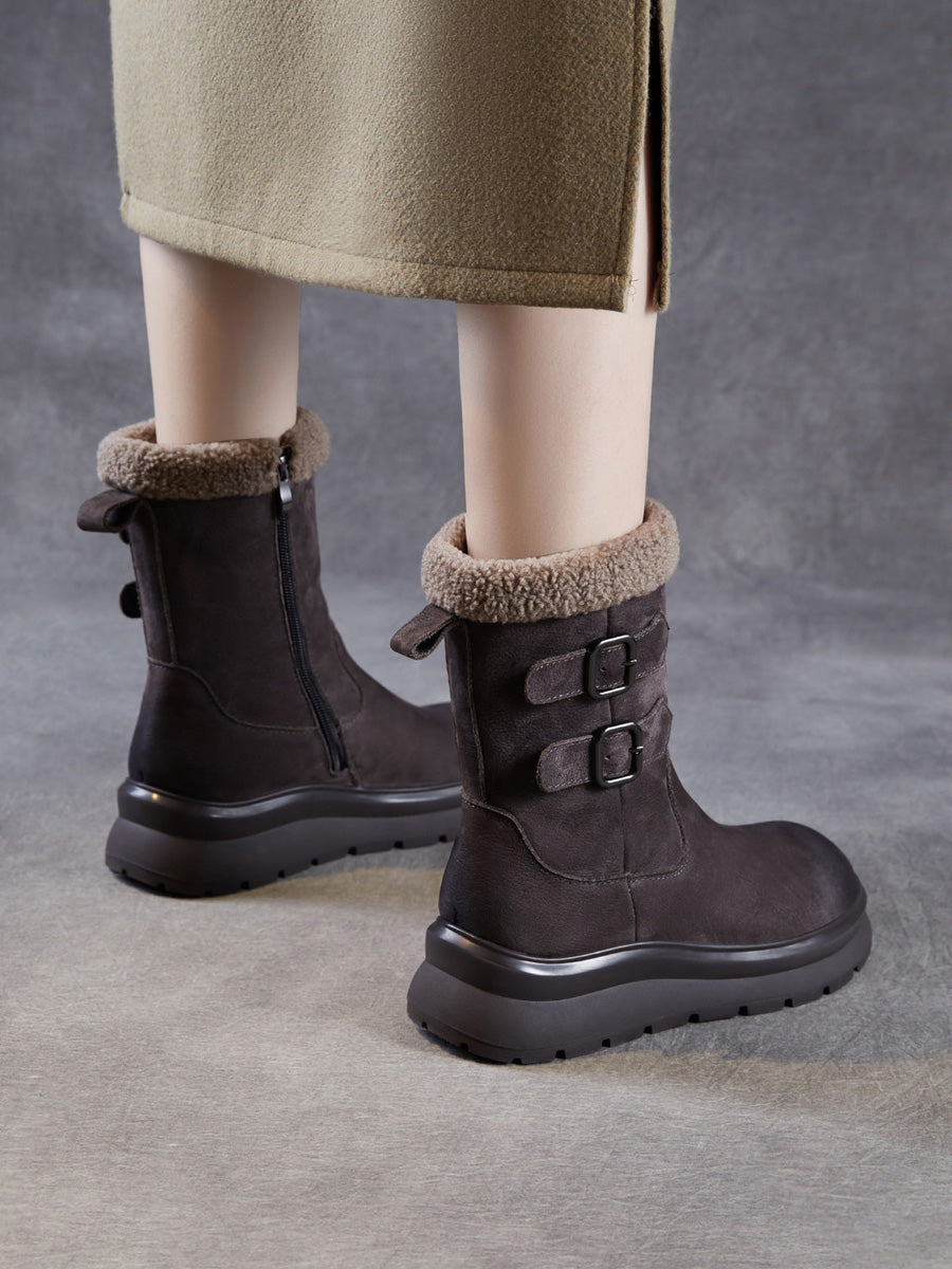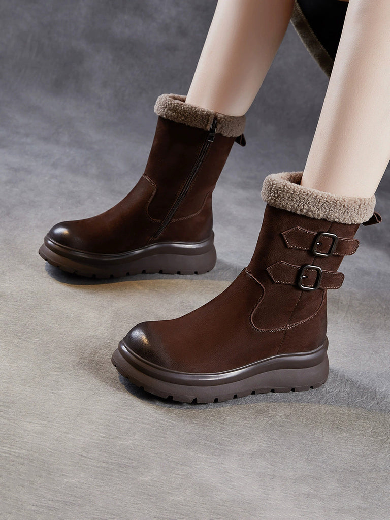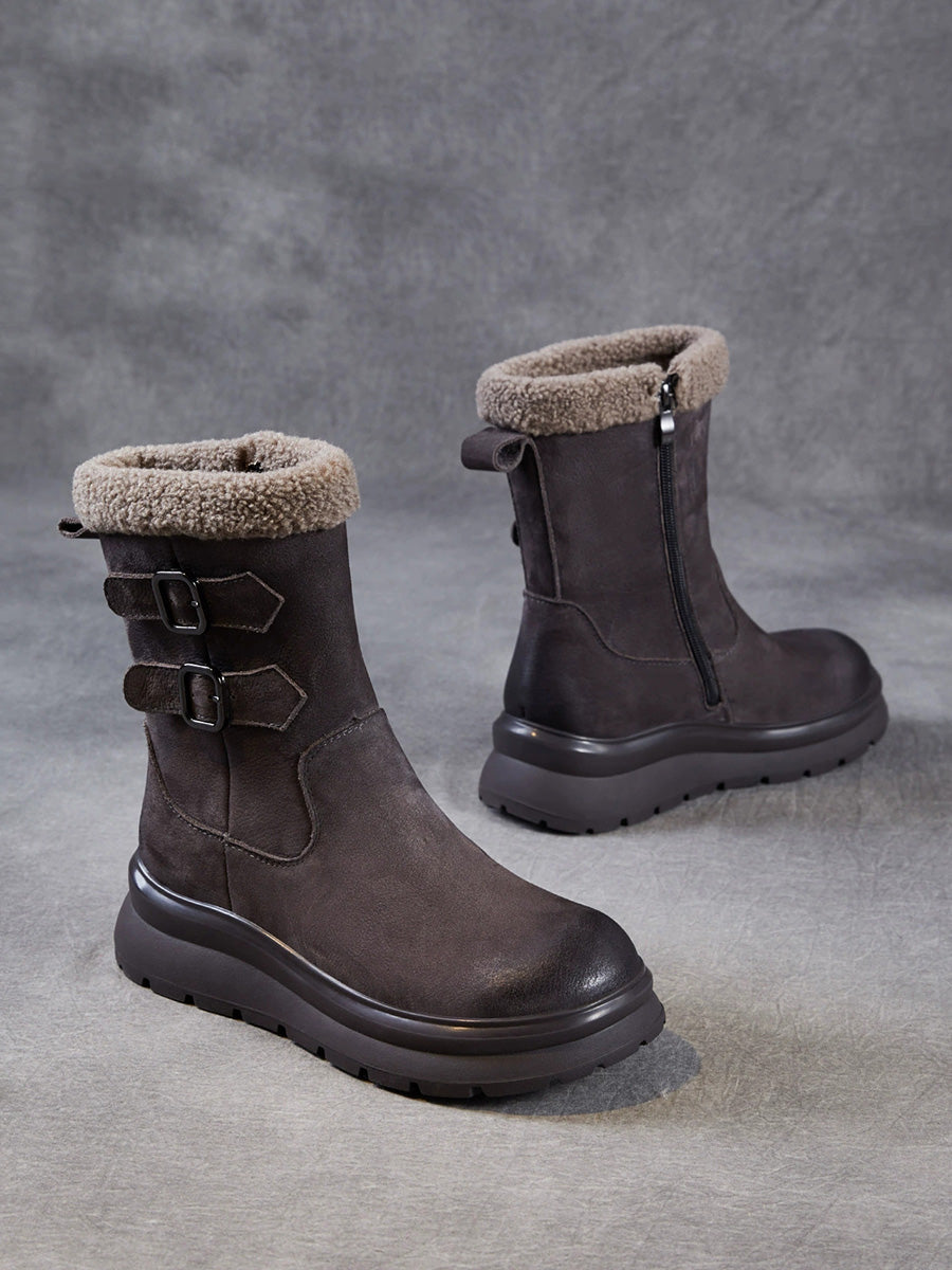 Women Winter Genuine Leather Fleece-lined Mid Heel Boots