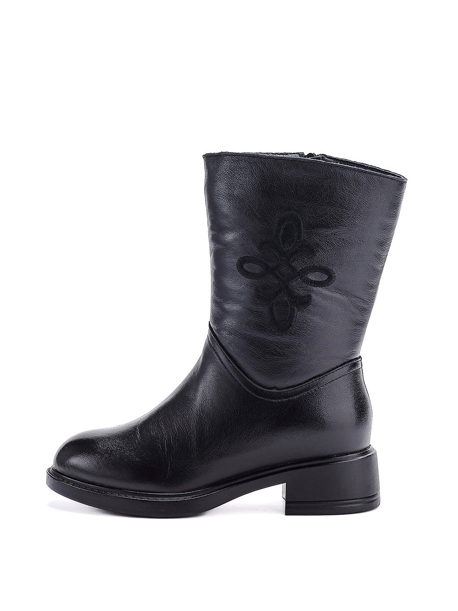 Women Winter Genuine Leather Fleece-lined Mid Heel Boots