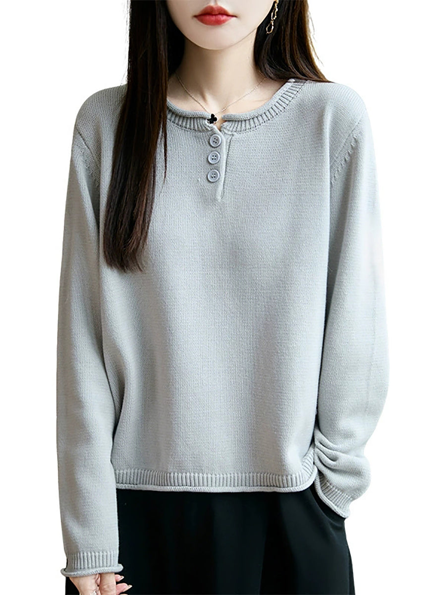 Women Winter Pure Color O-Neck Knitted 100%Cotton Sweater