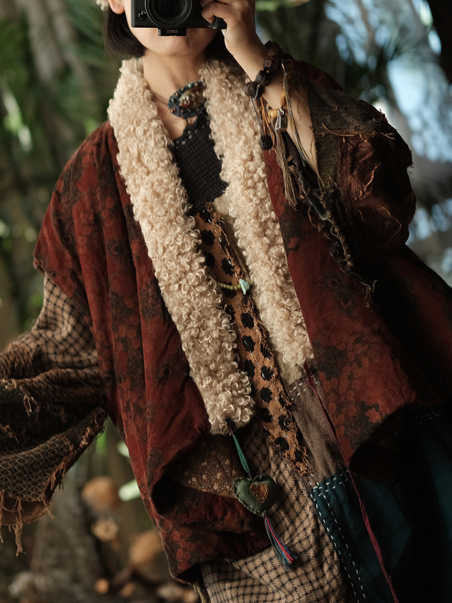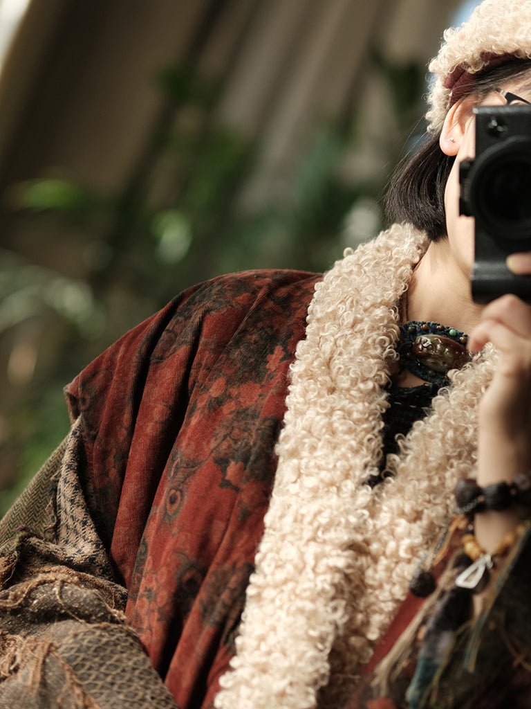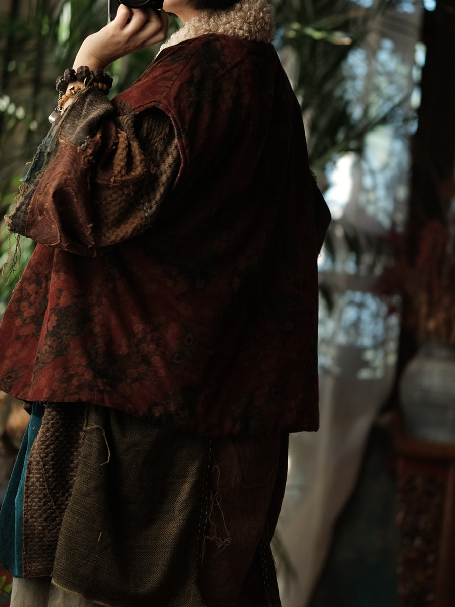 This product features a V-neck style and vintage design, perfect for the winter and autumn seasons. The material used is cotton, with a flower pattern and a comfortable fleece lining.