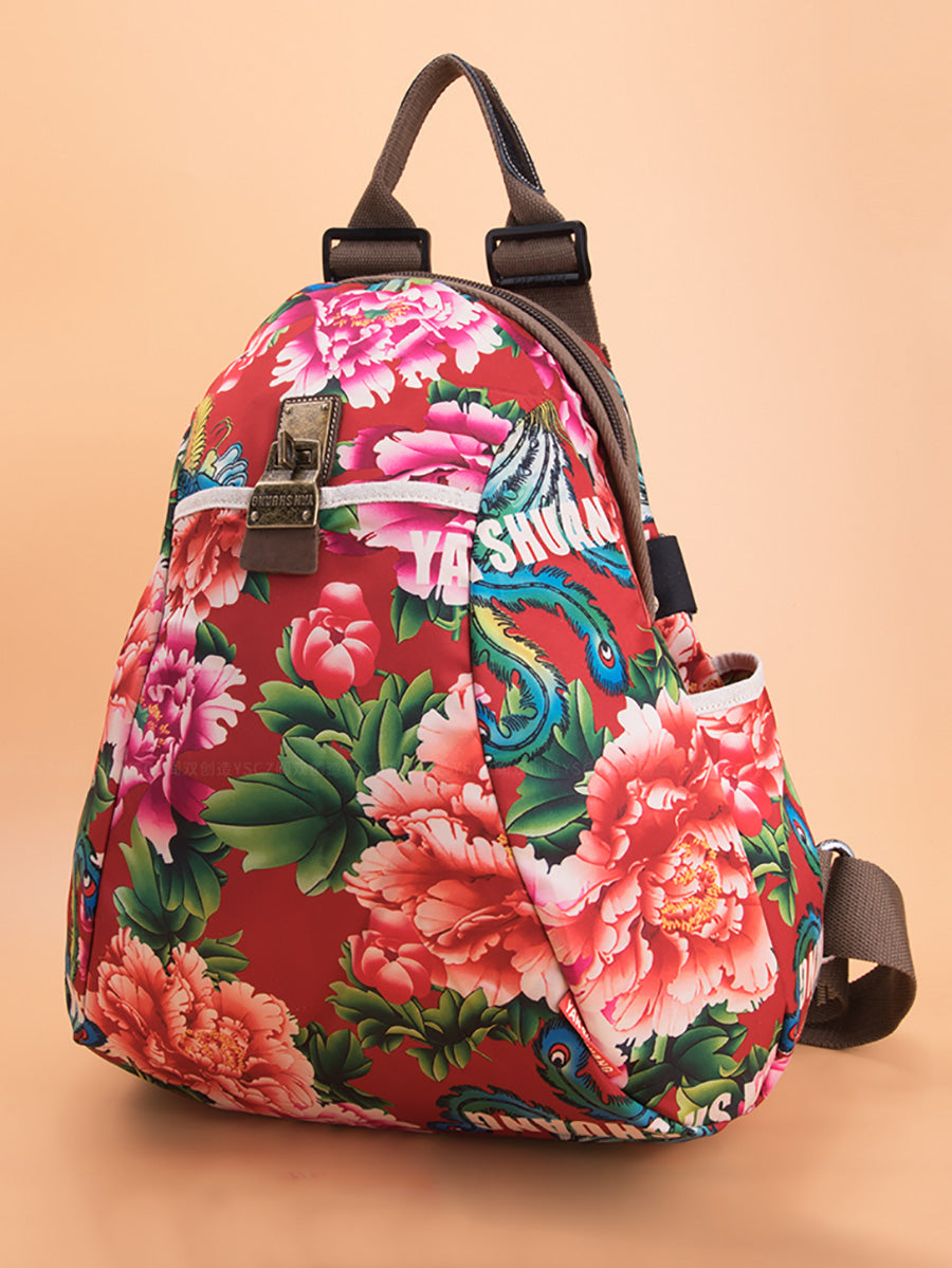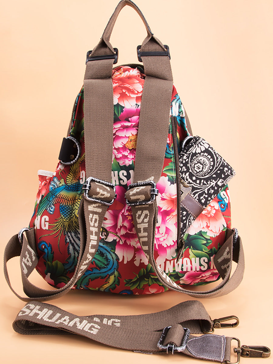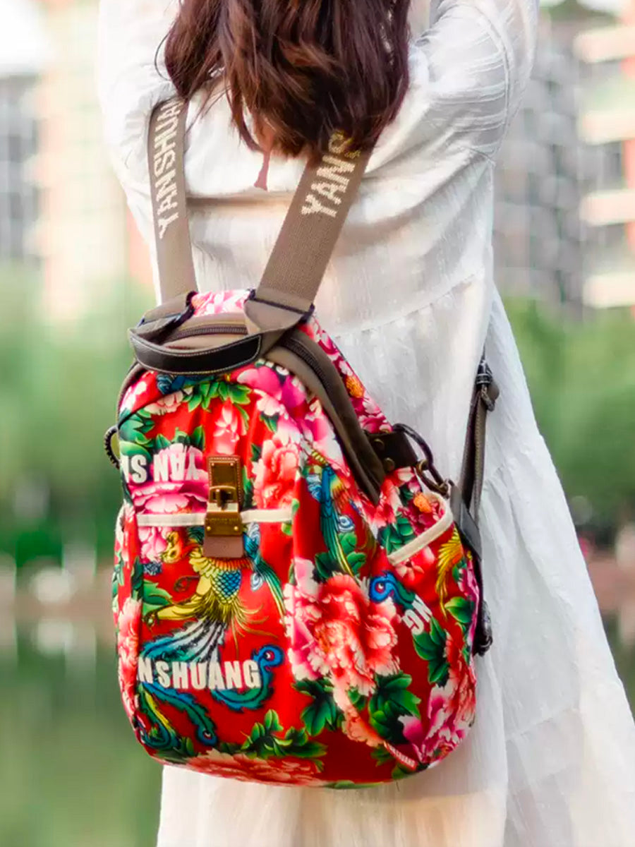 Women Ethnic Flower Large Capacity Backpack