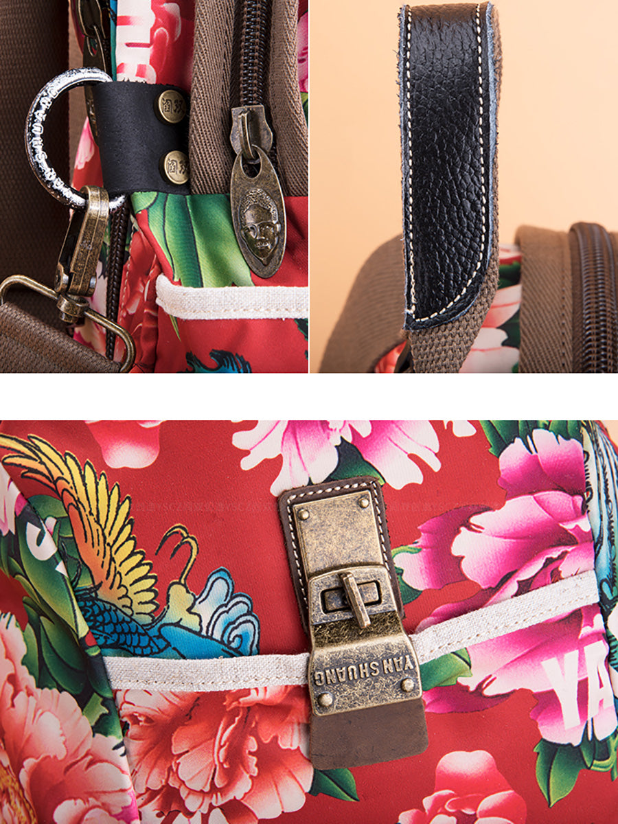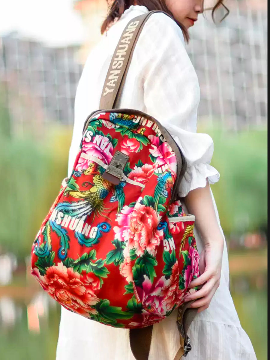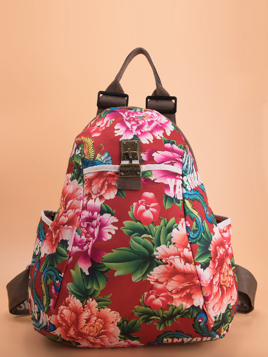 Women Ethnic Flower Large Capacity Backpack