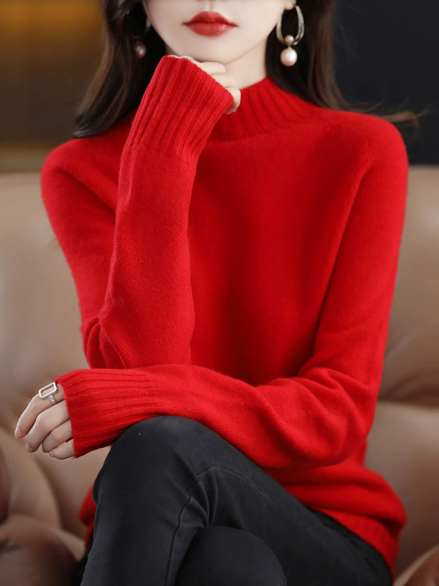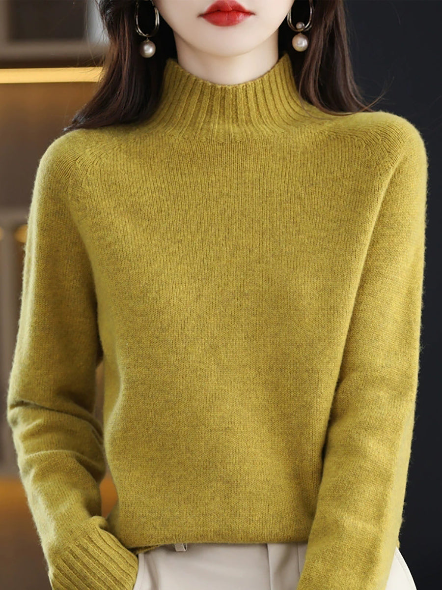 Women Casual Spring Pure Color Half-turtleneck Sweater