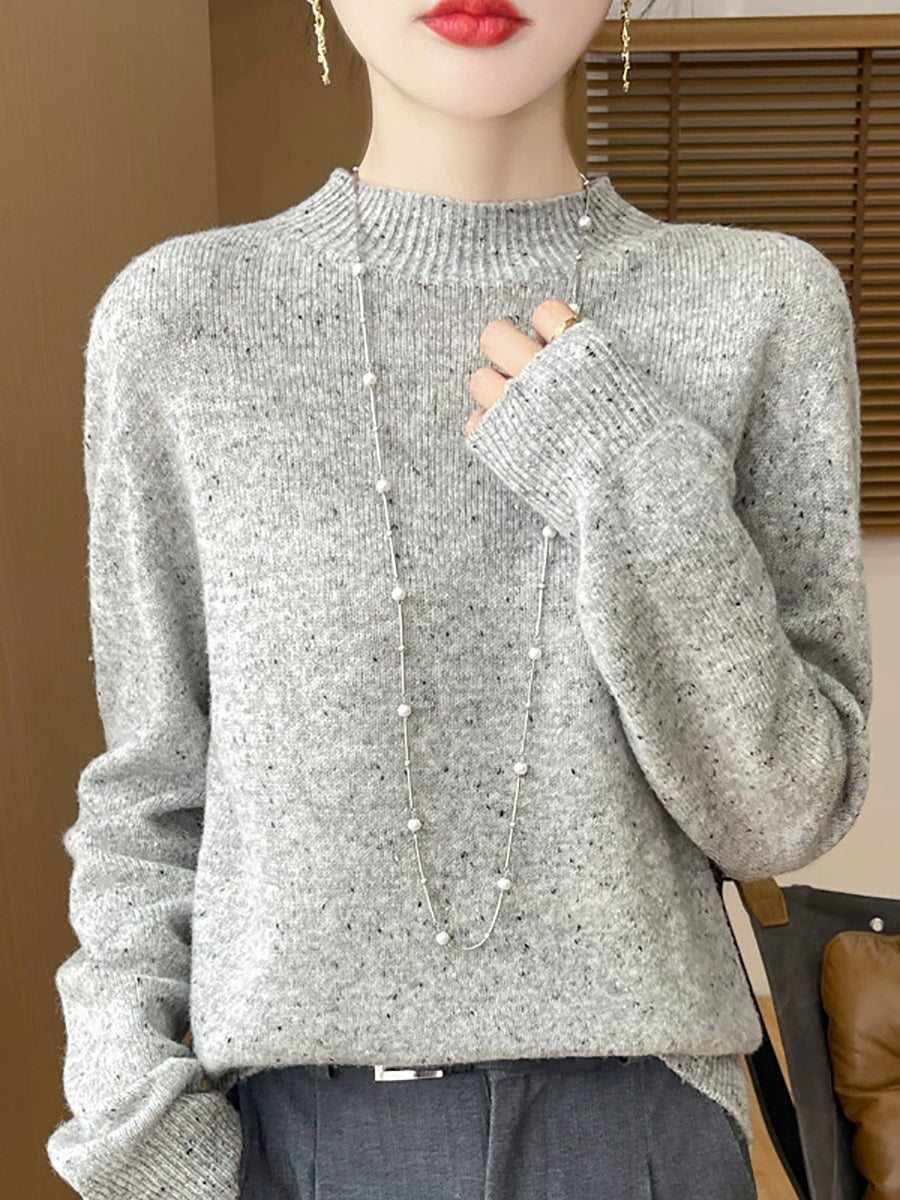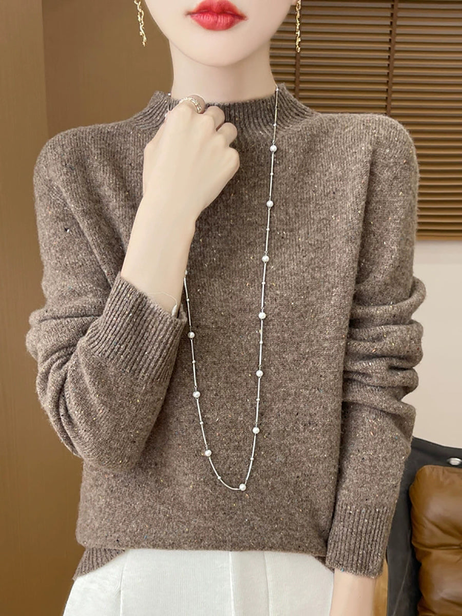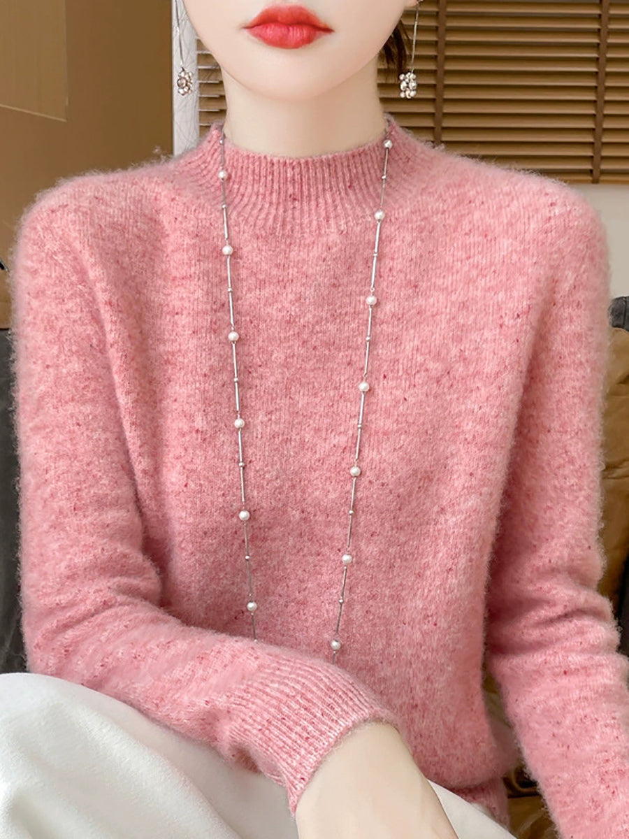 Women Casual Spring Pure Color Half-turtleneck Sweater
