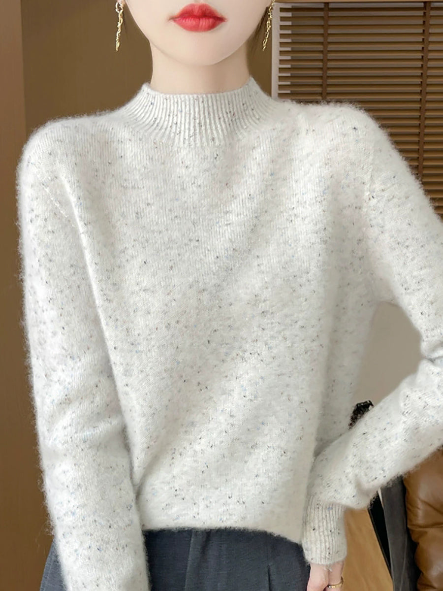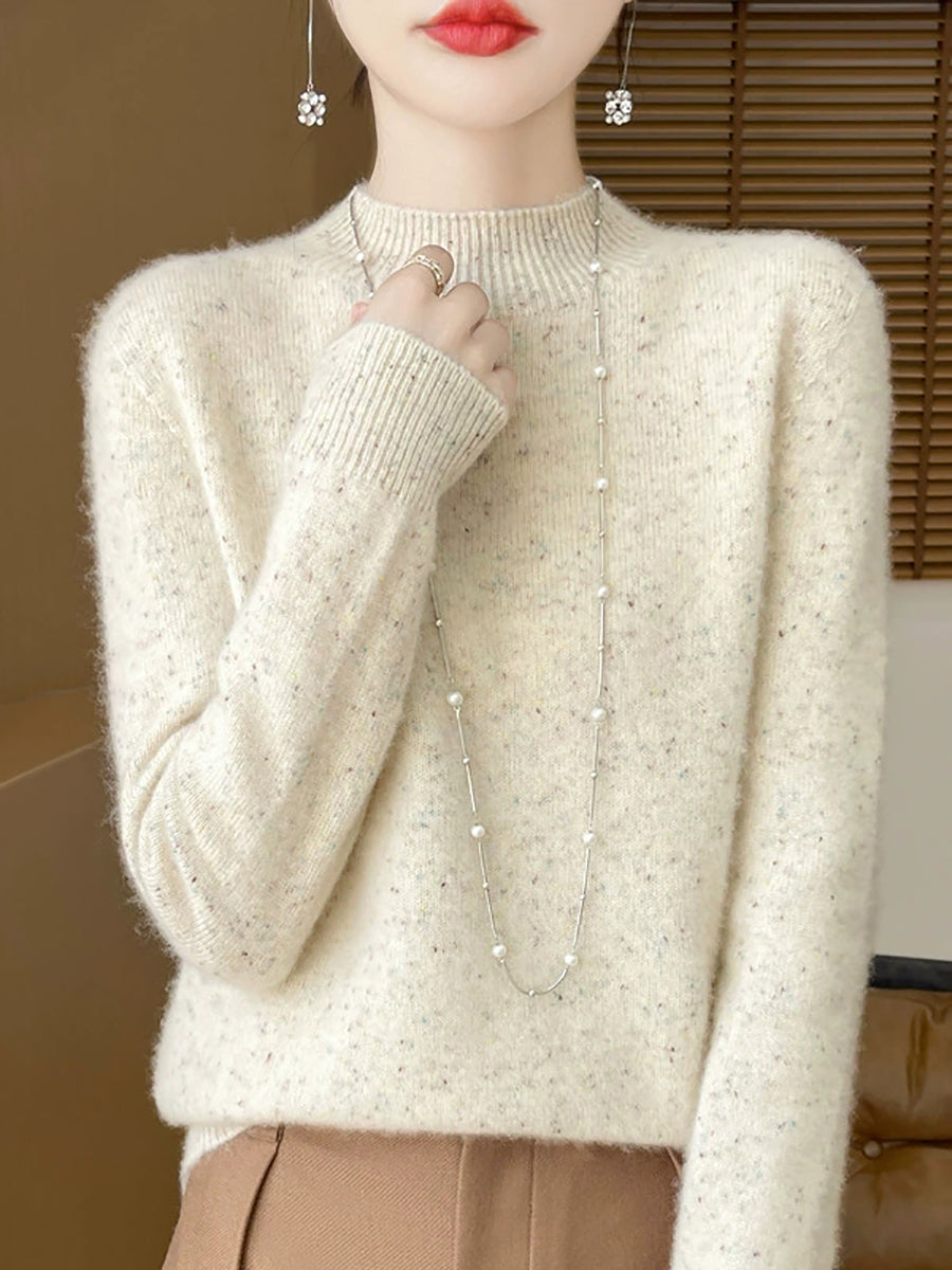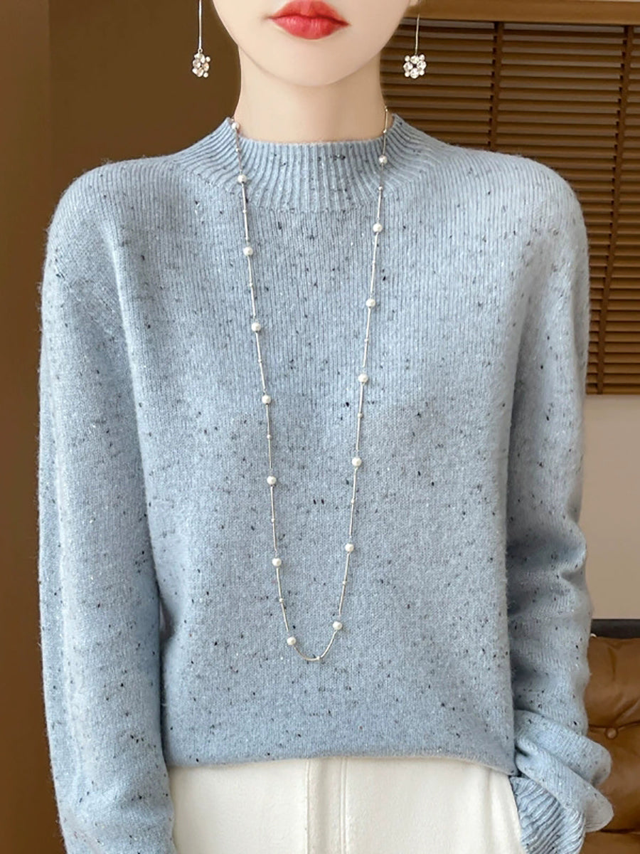 Women Casual Spring Pure Color Half-turtleneck Sweater