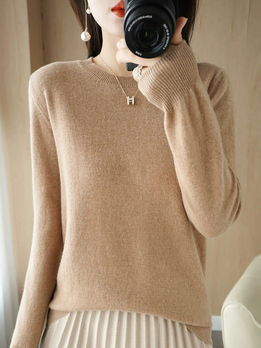 Women Casual Spring Pure Color O-Neck Sweater