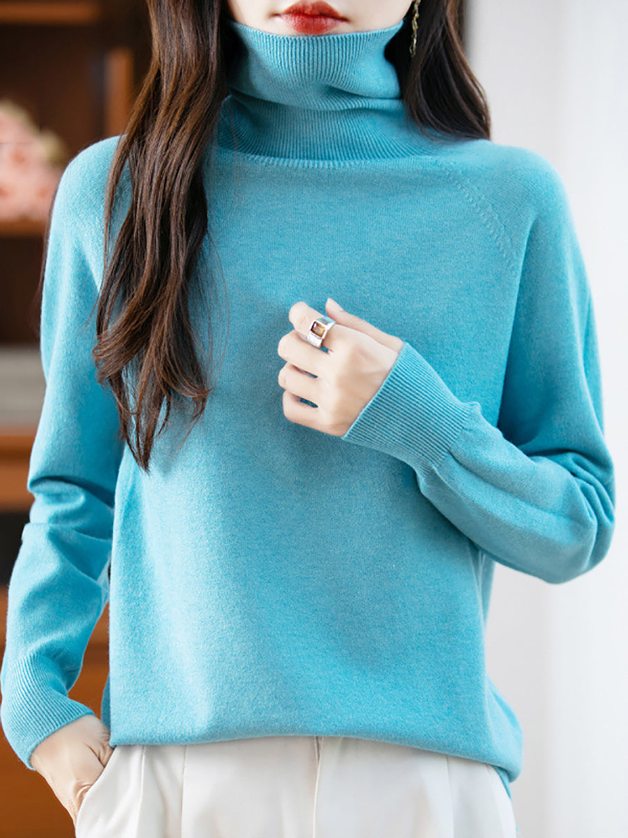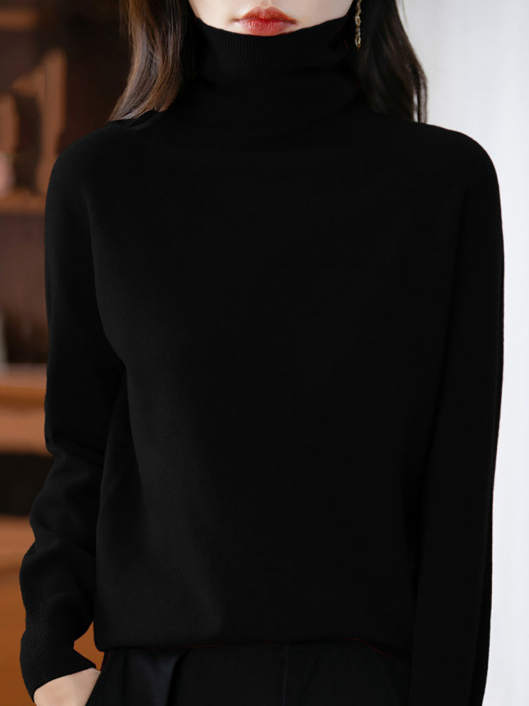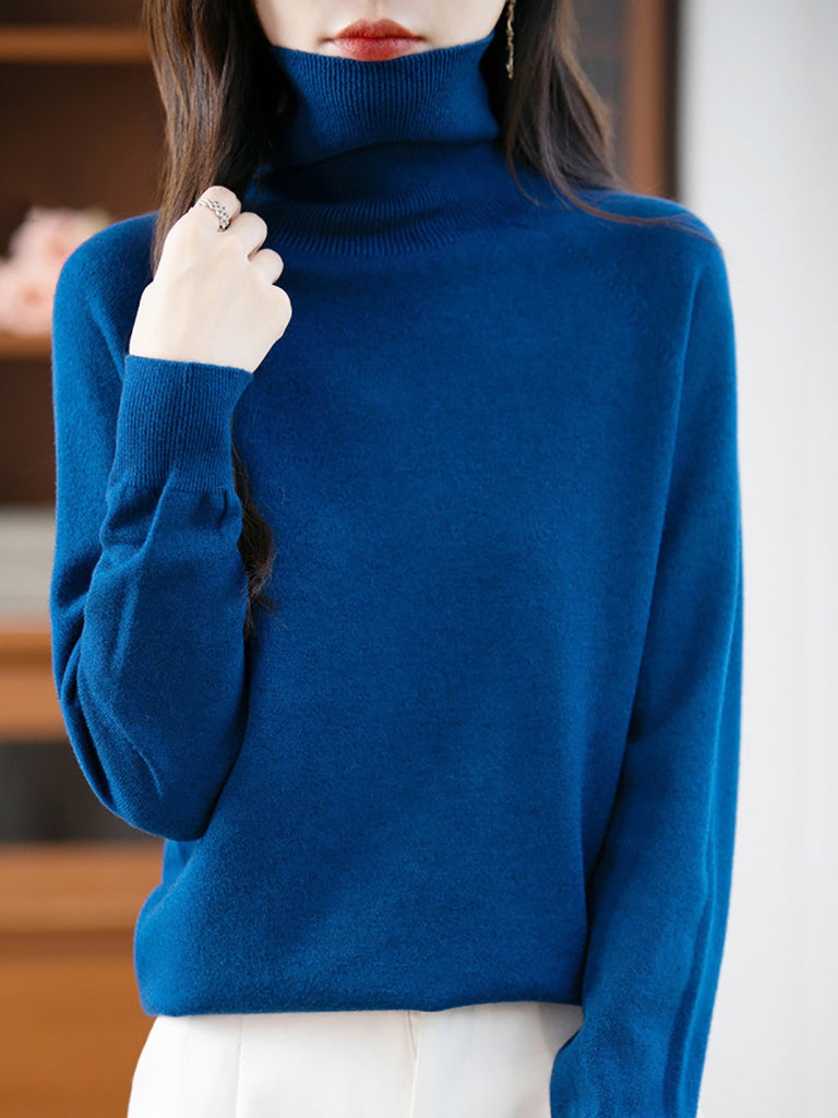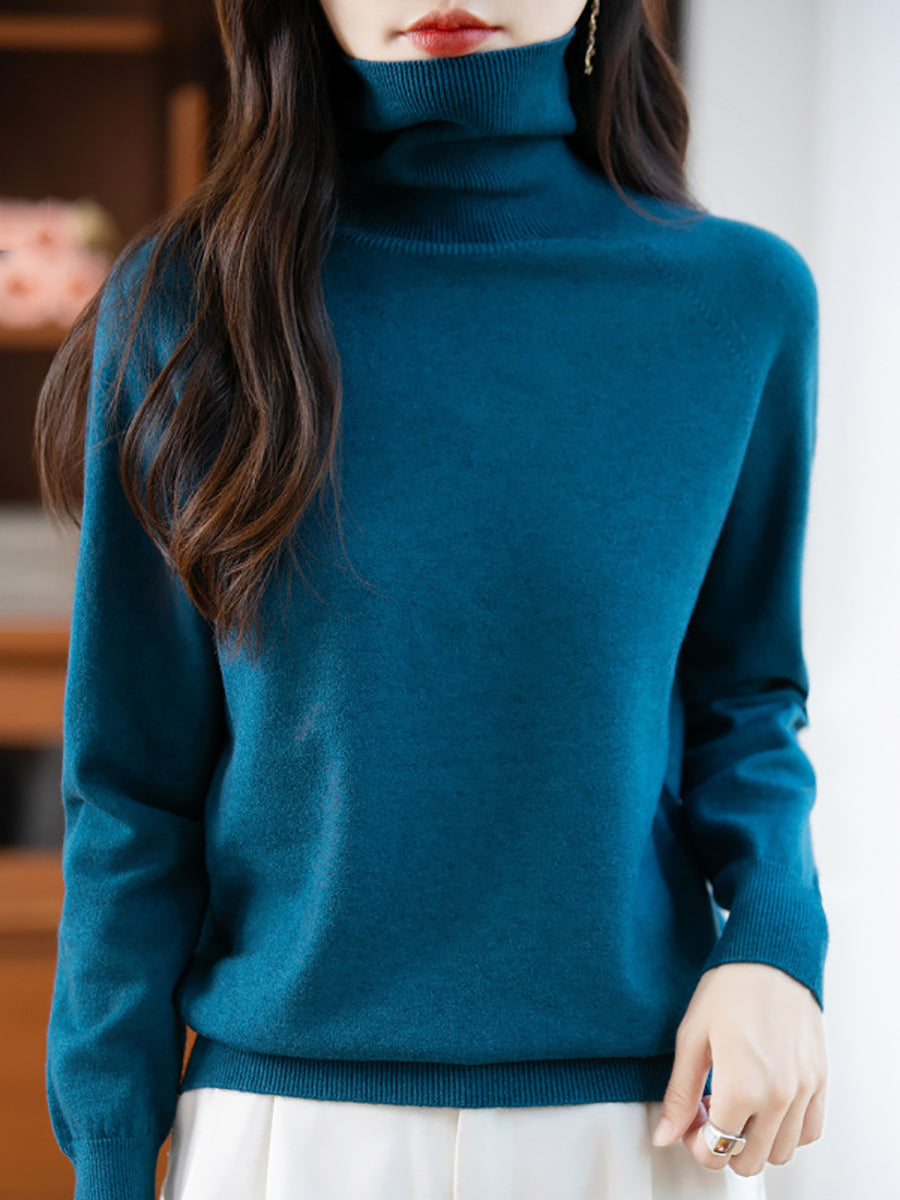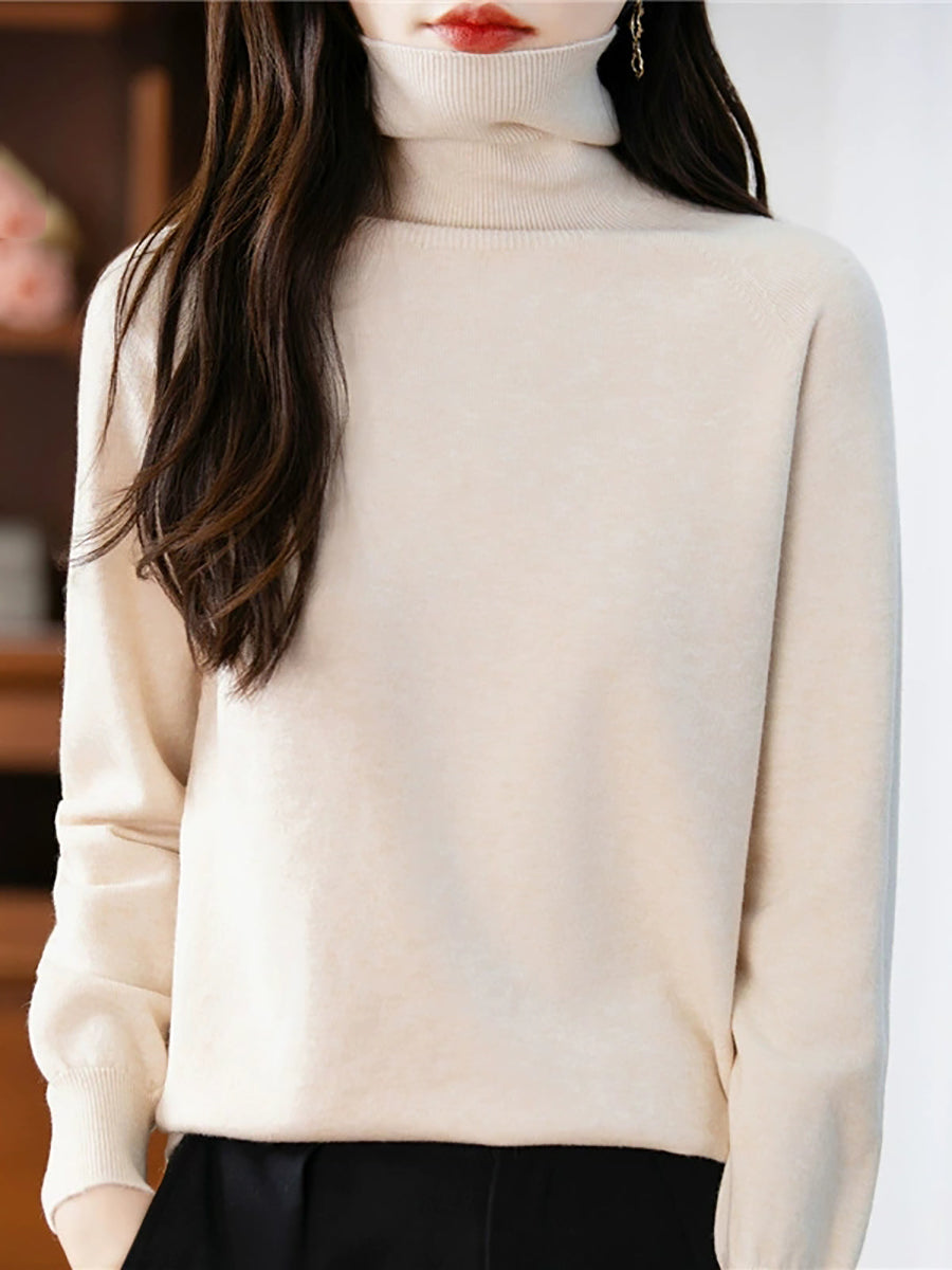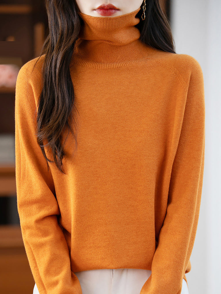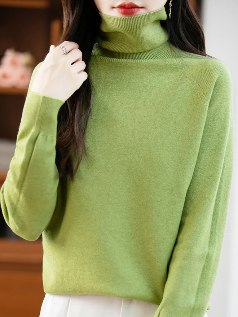 Women Autumn Artsy Pure Color Turtleneck Sweater