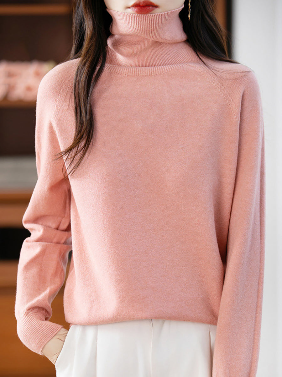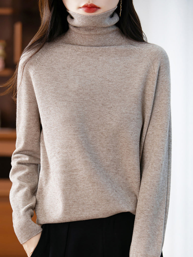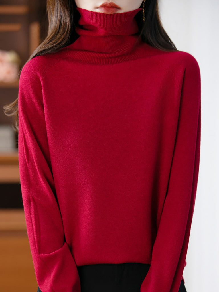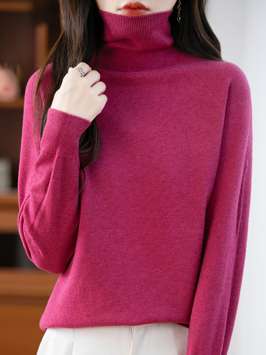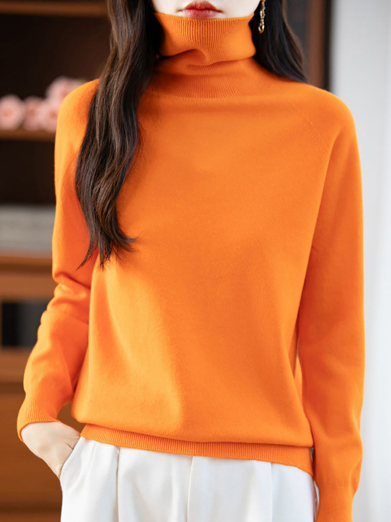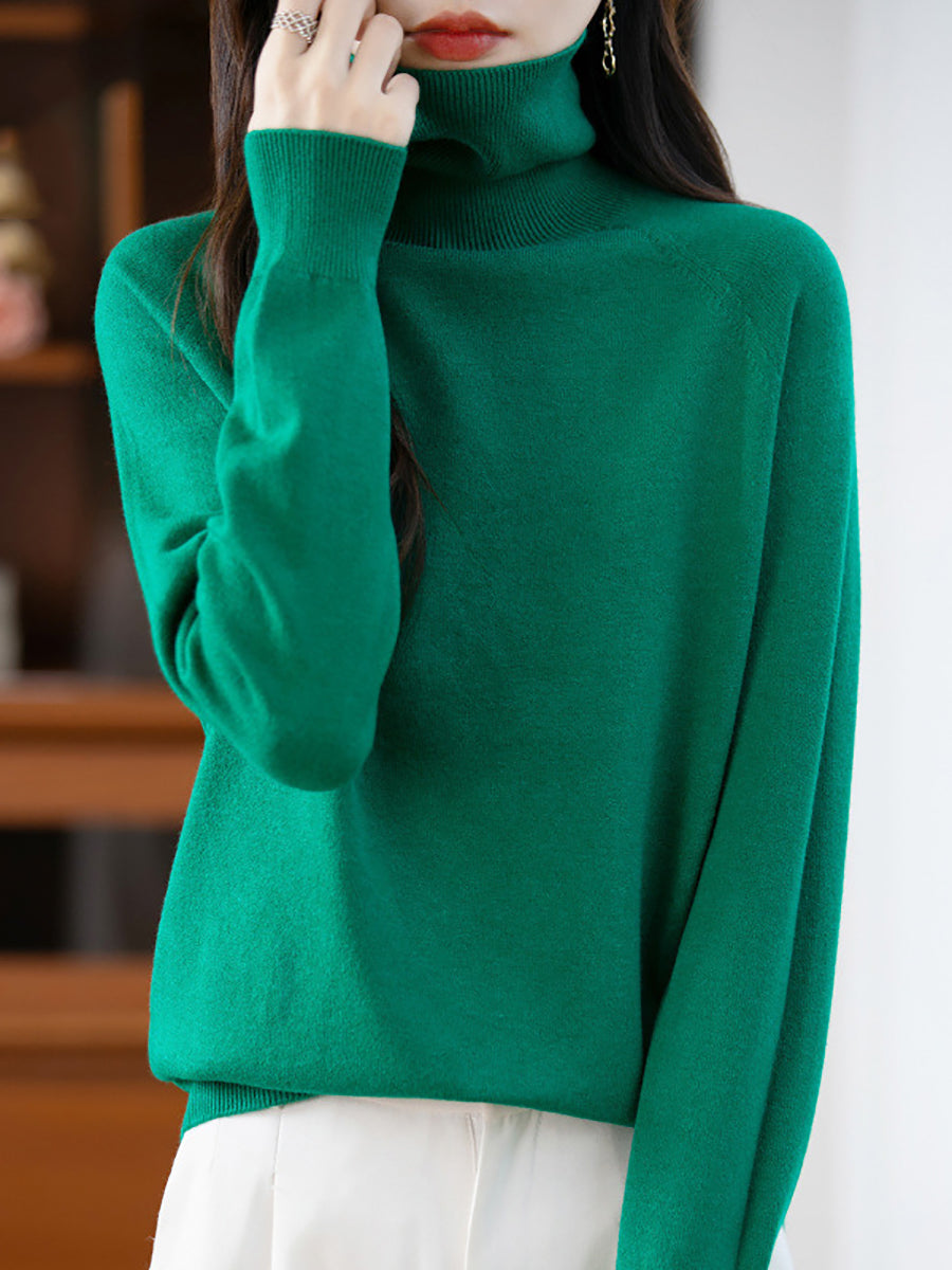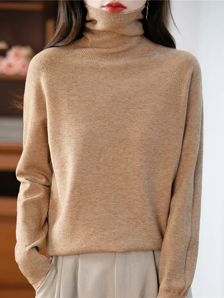 Women Autumn Artsy Pure Color Turtleneck Sweater