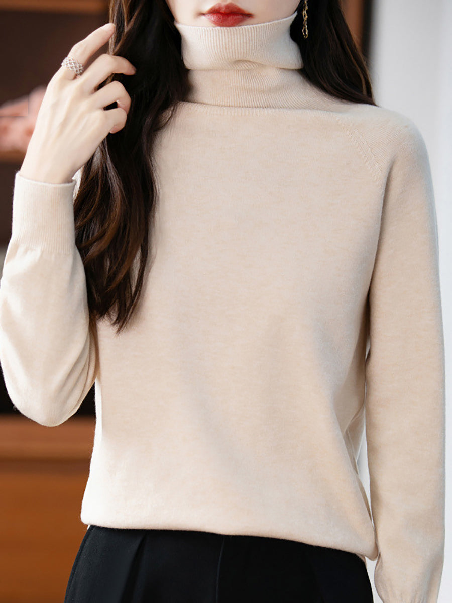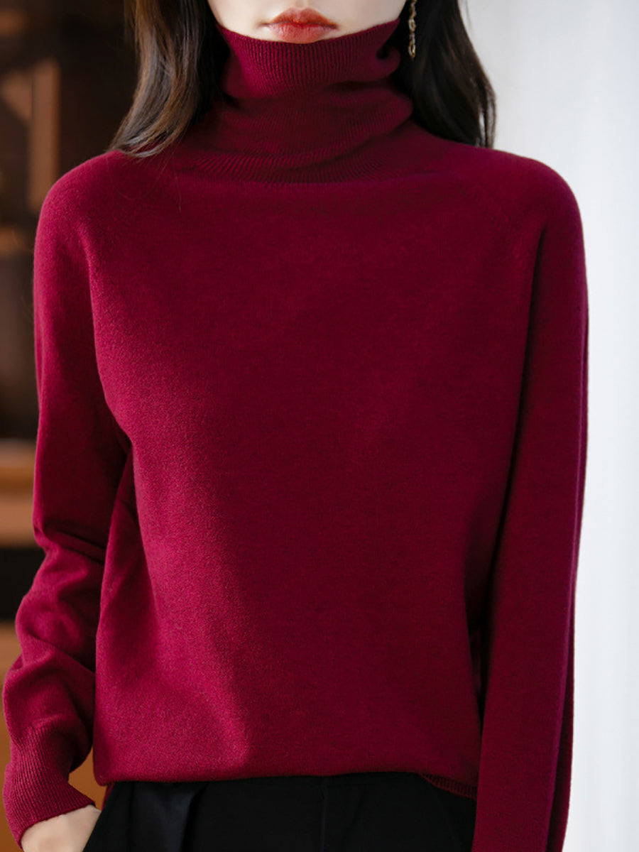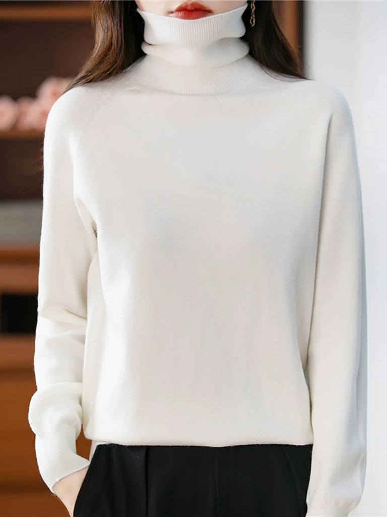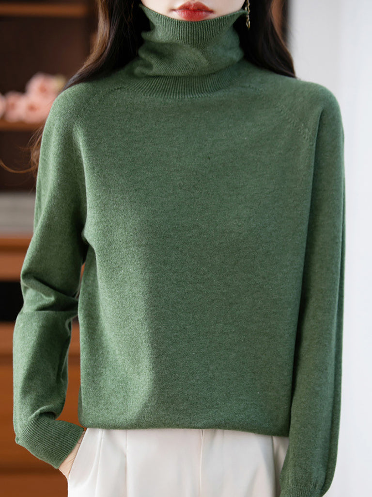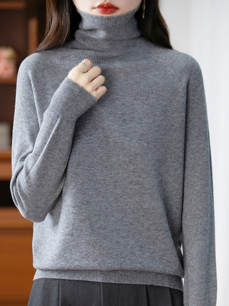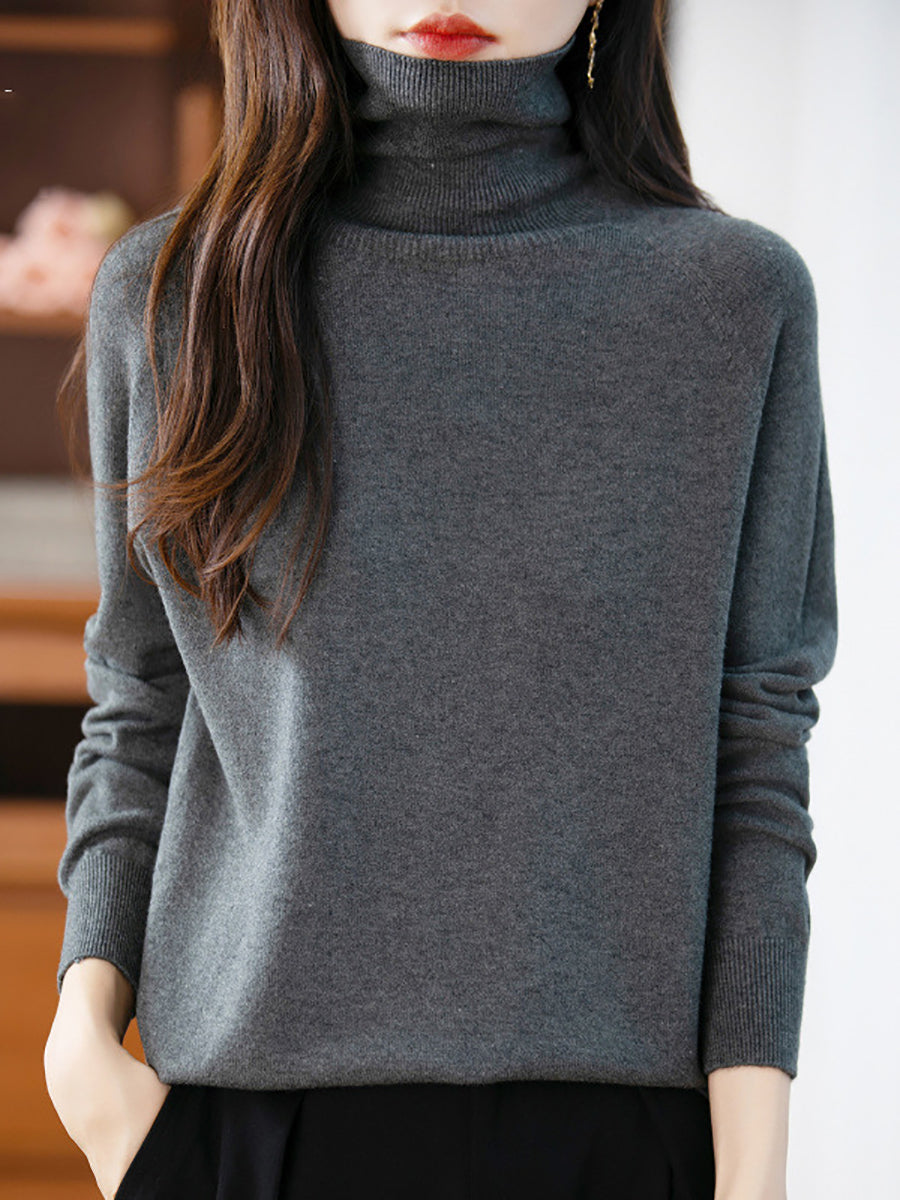 Women Autumn Artsy Pure Color Turtleneck Sweater