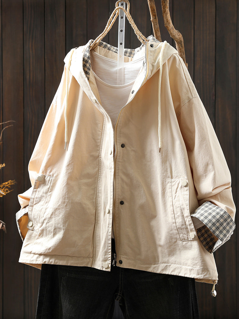 Plus Size Women Autumn Pure Color Hooded Cotton Cardigan Coat