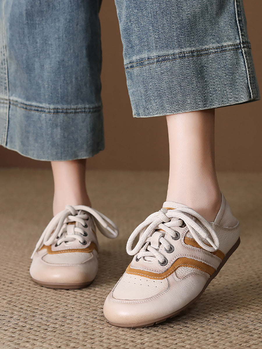 Women Summer Colorblock Genuine Leather Flat Shoes