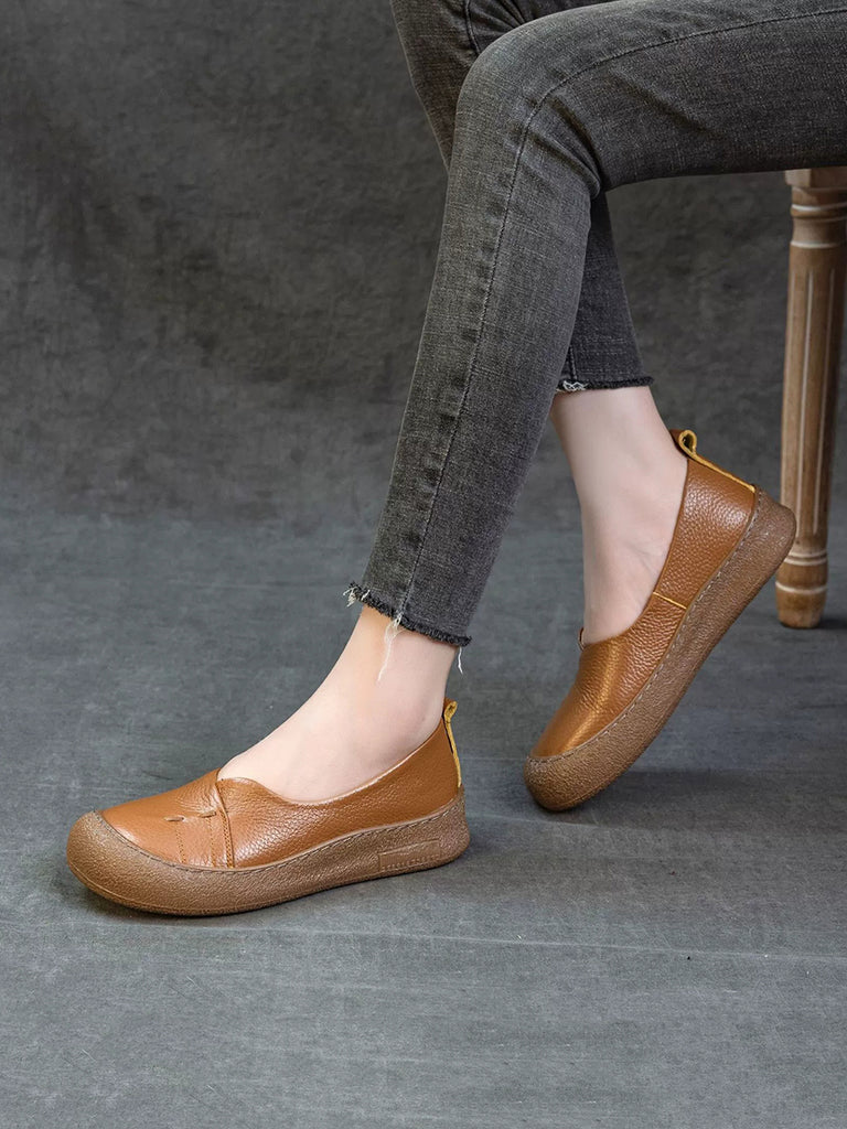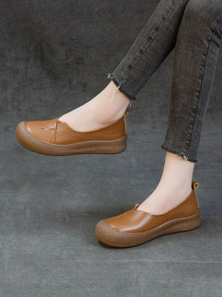 Women Casual Pure Color Genuine Leather Flat Shoes