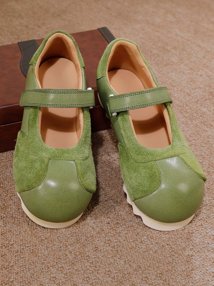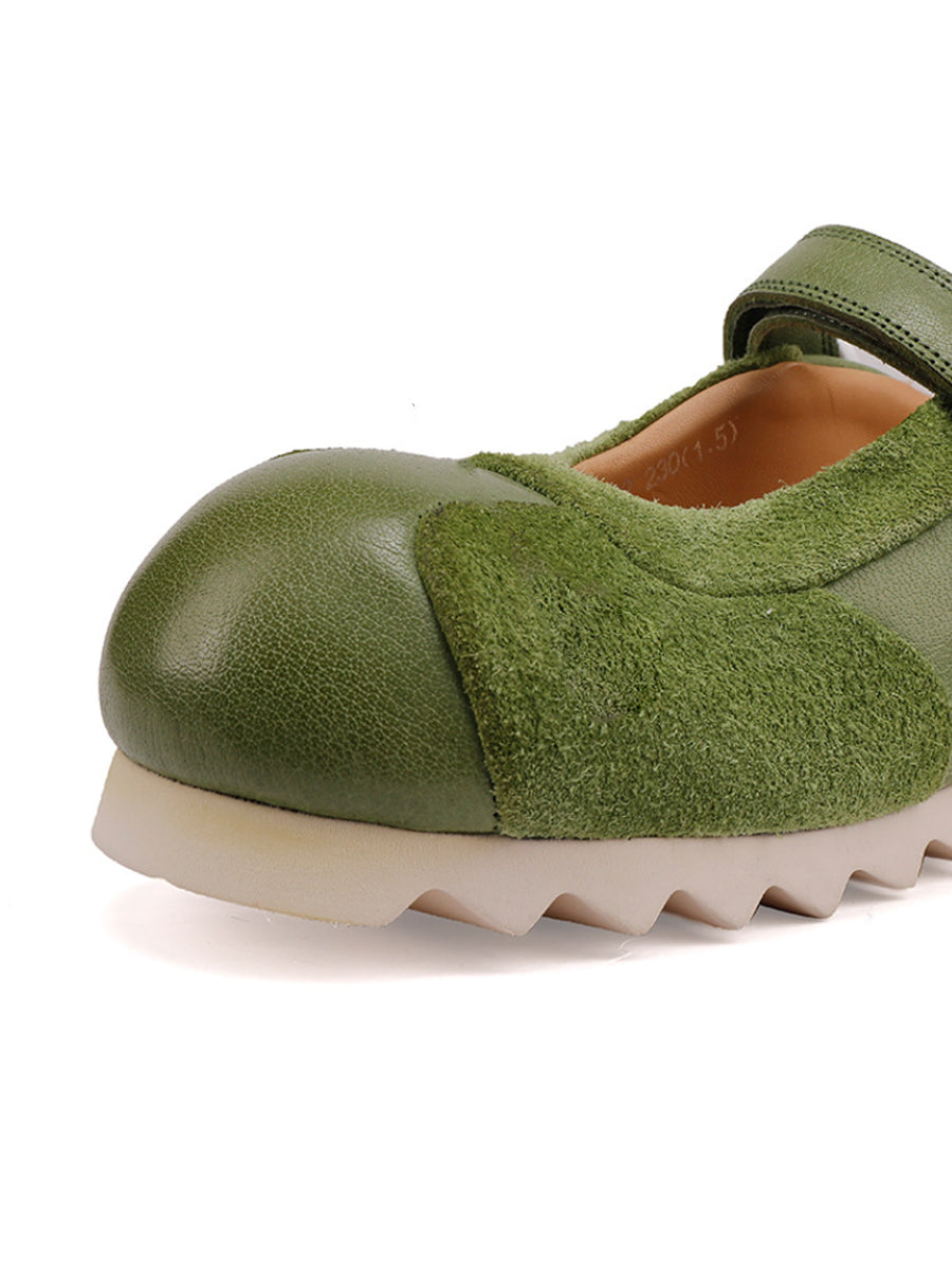Women Retro Genuine Leather Spliced Flat Shoes
