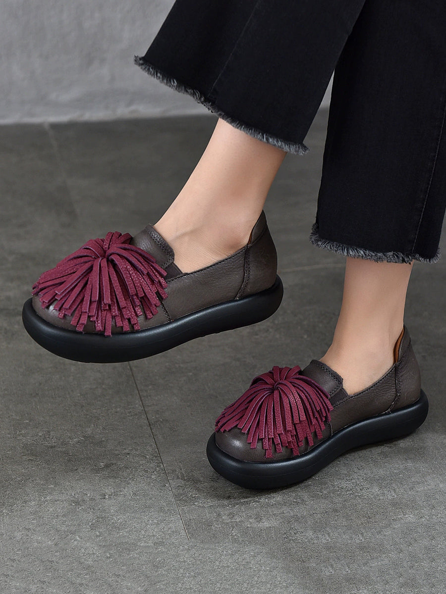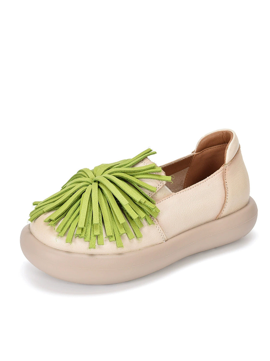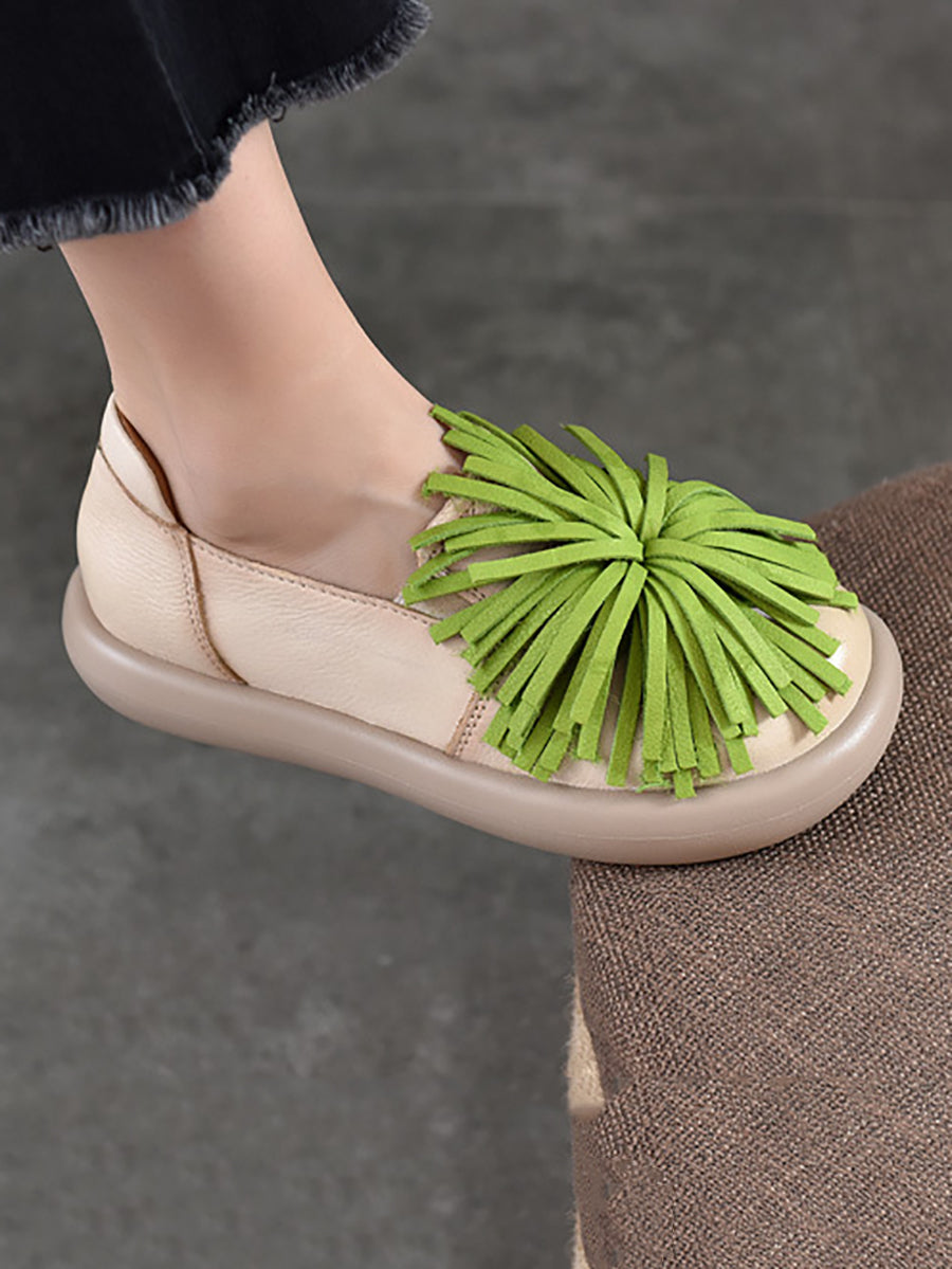 Women Spring Casual Genuine Leather Tassel Flat Shoes