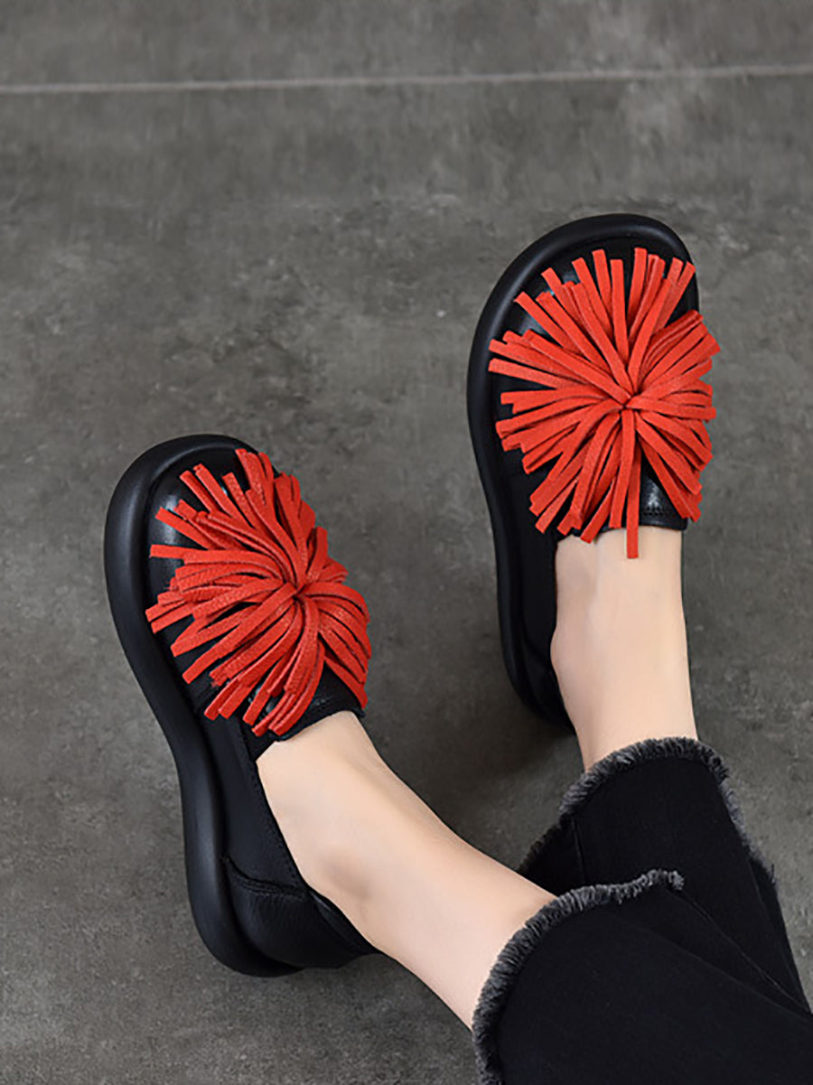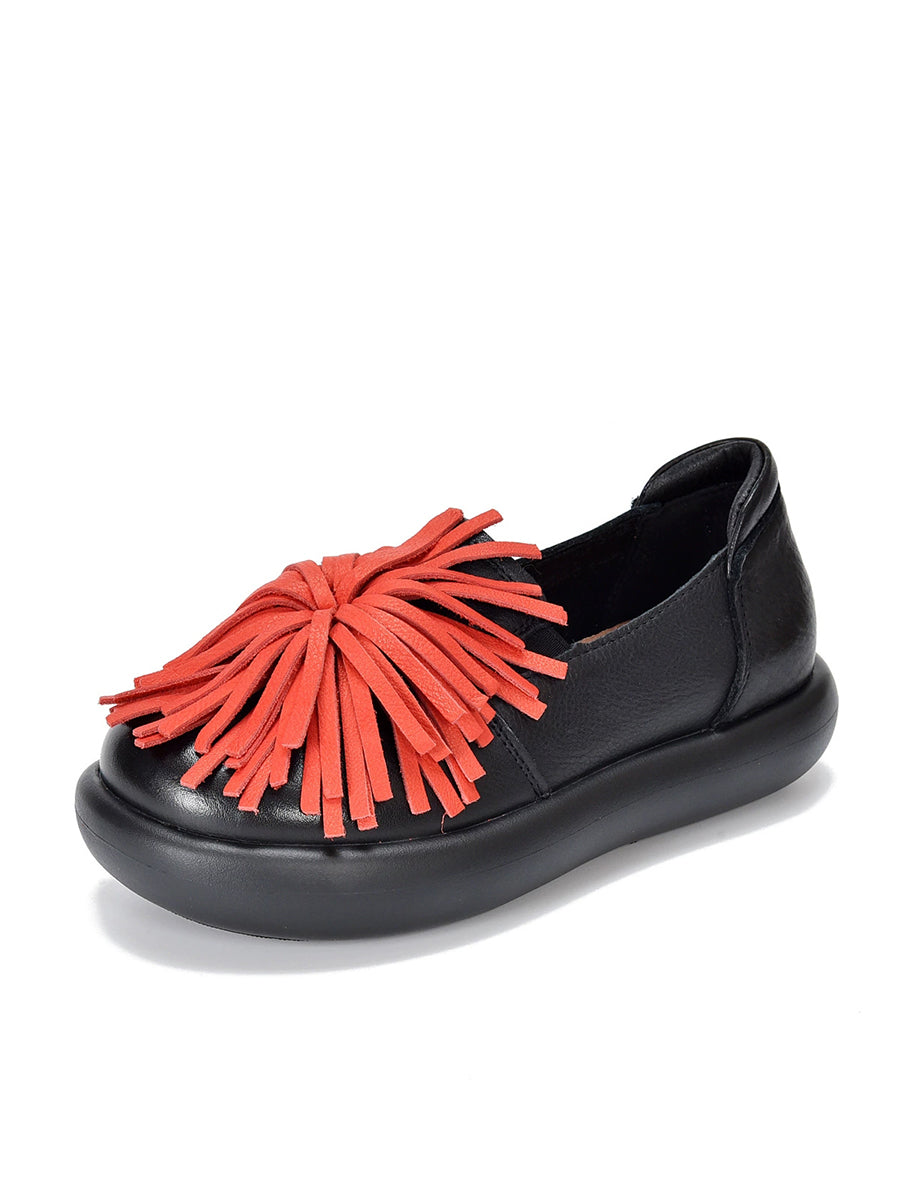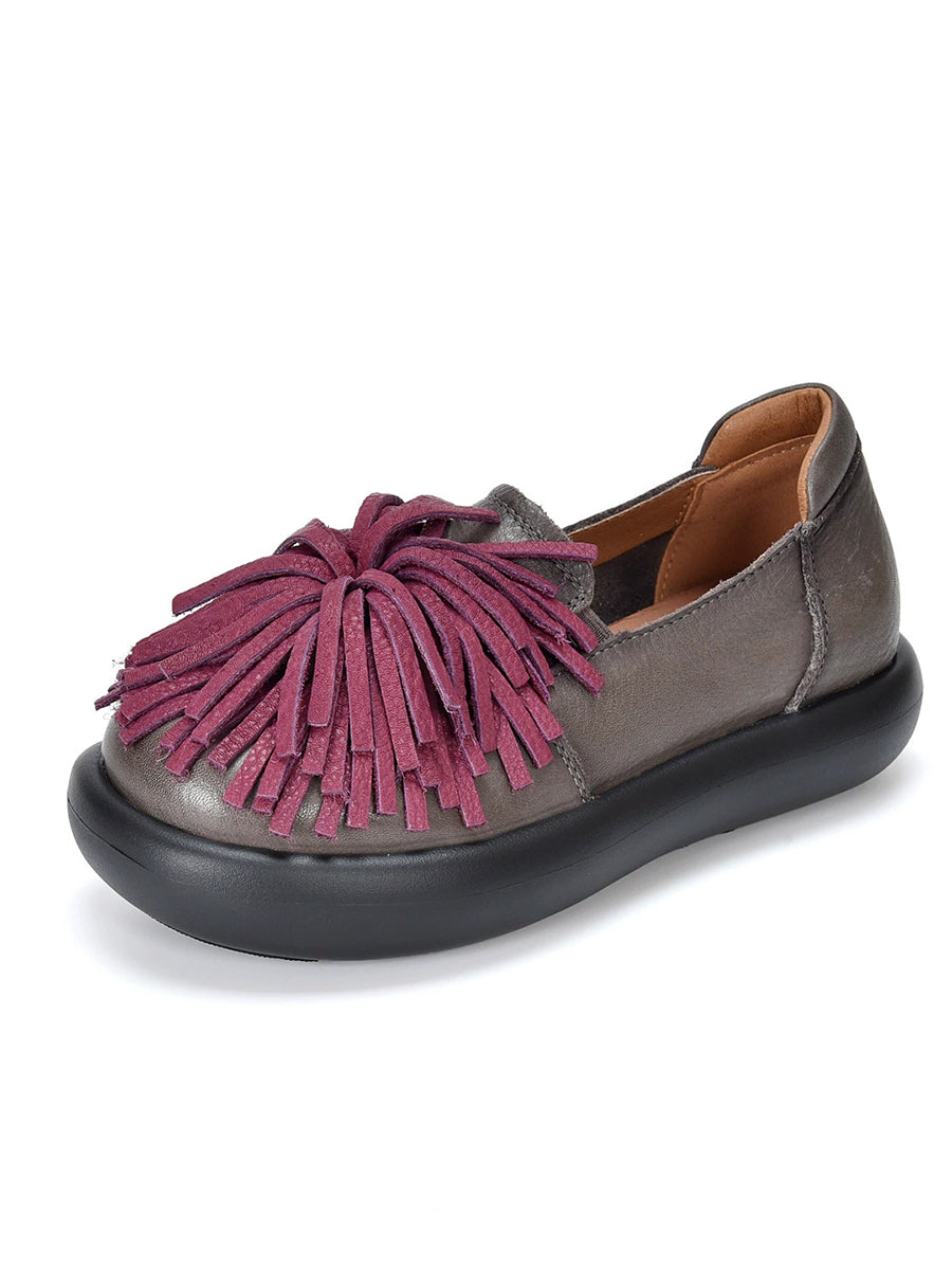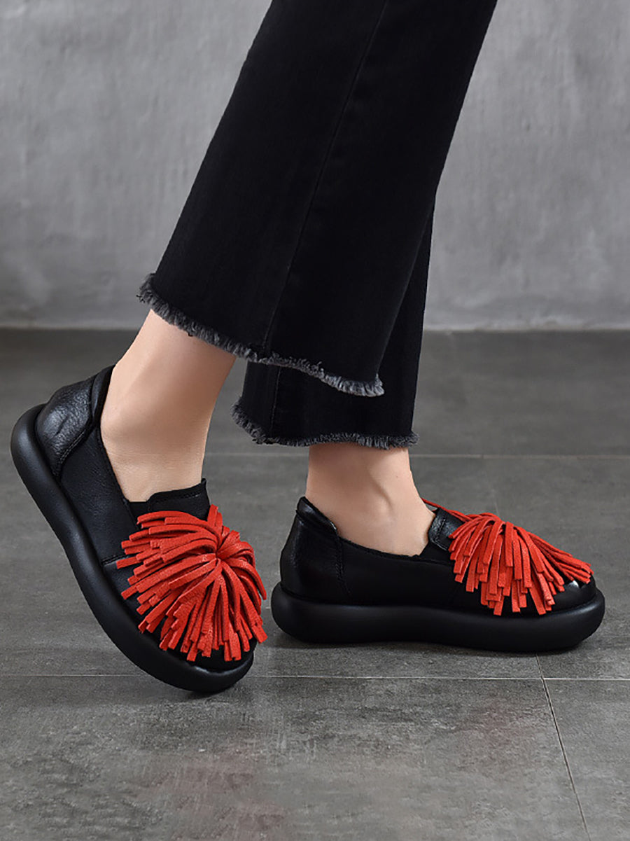 Women Spring Casual Genuine Leather Tassel Flat Shoes