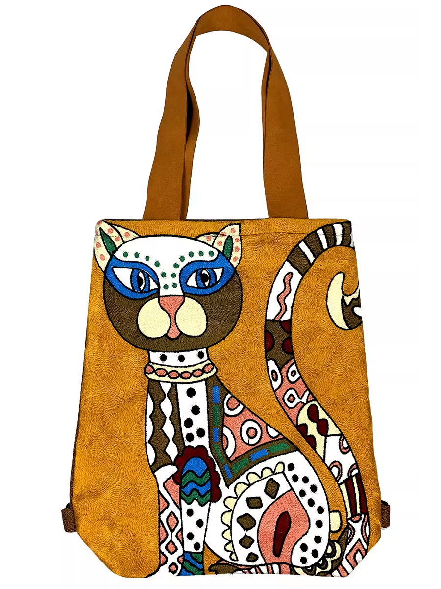 Ethnic Embroidered Cat Trapezoid Shoulder Bag
