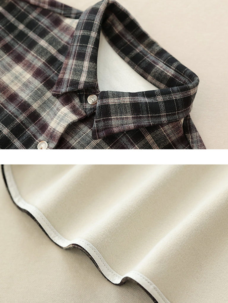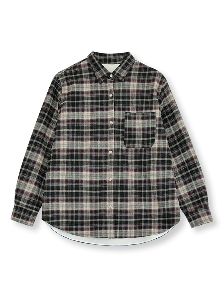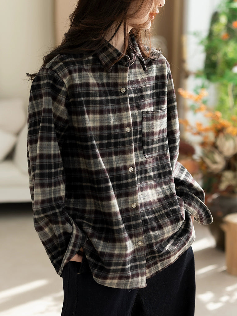 Women Winter Retro Plaid Turn-down Collar Shirt