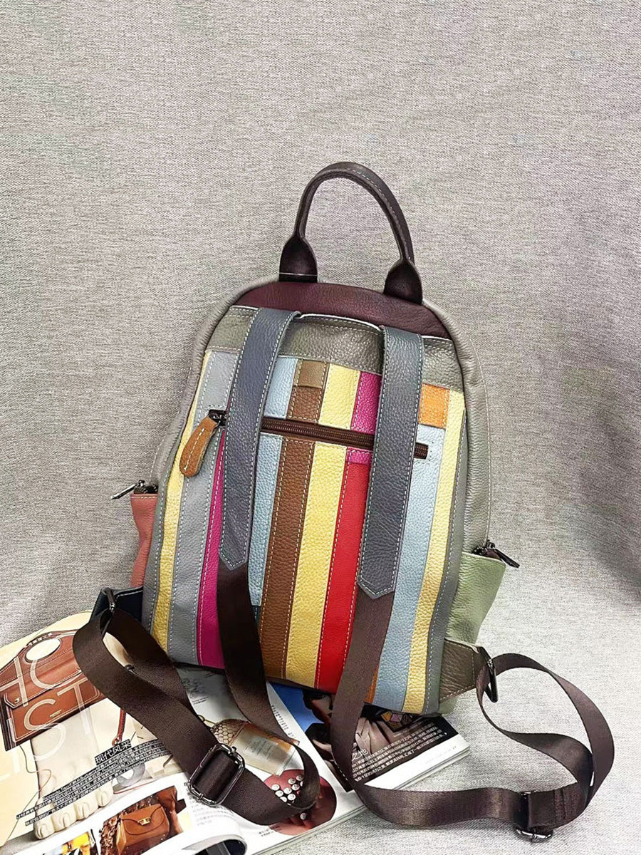 Multicolor Rhomboids Leather Spliced Zipper Backpack