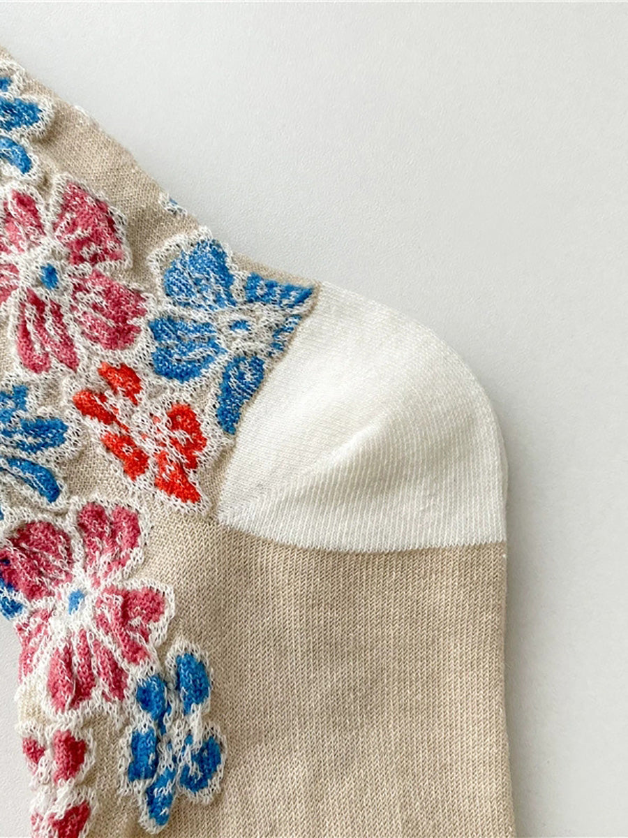 5 Pairs Women Artsy Flower Jacquard Cotton Socks