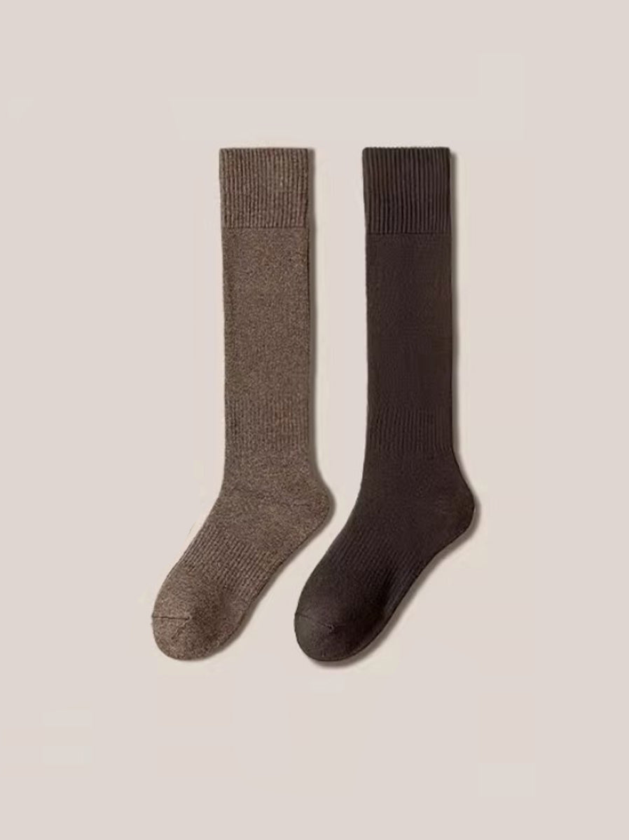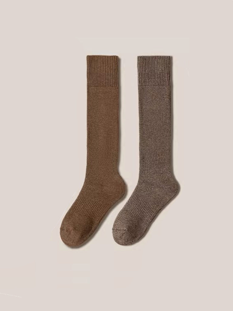 2 Pairs Women Winter Fleece-lined Thick Calf-Length Socks