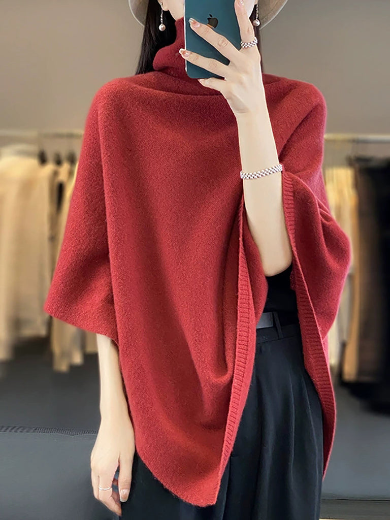 Women Artsy Pure Color Turtleneck Pullover Shawl Scarf