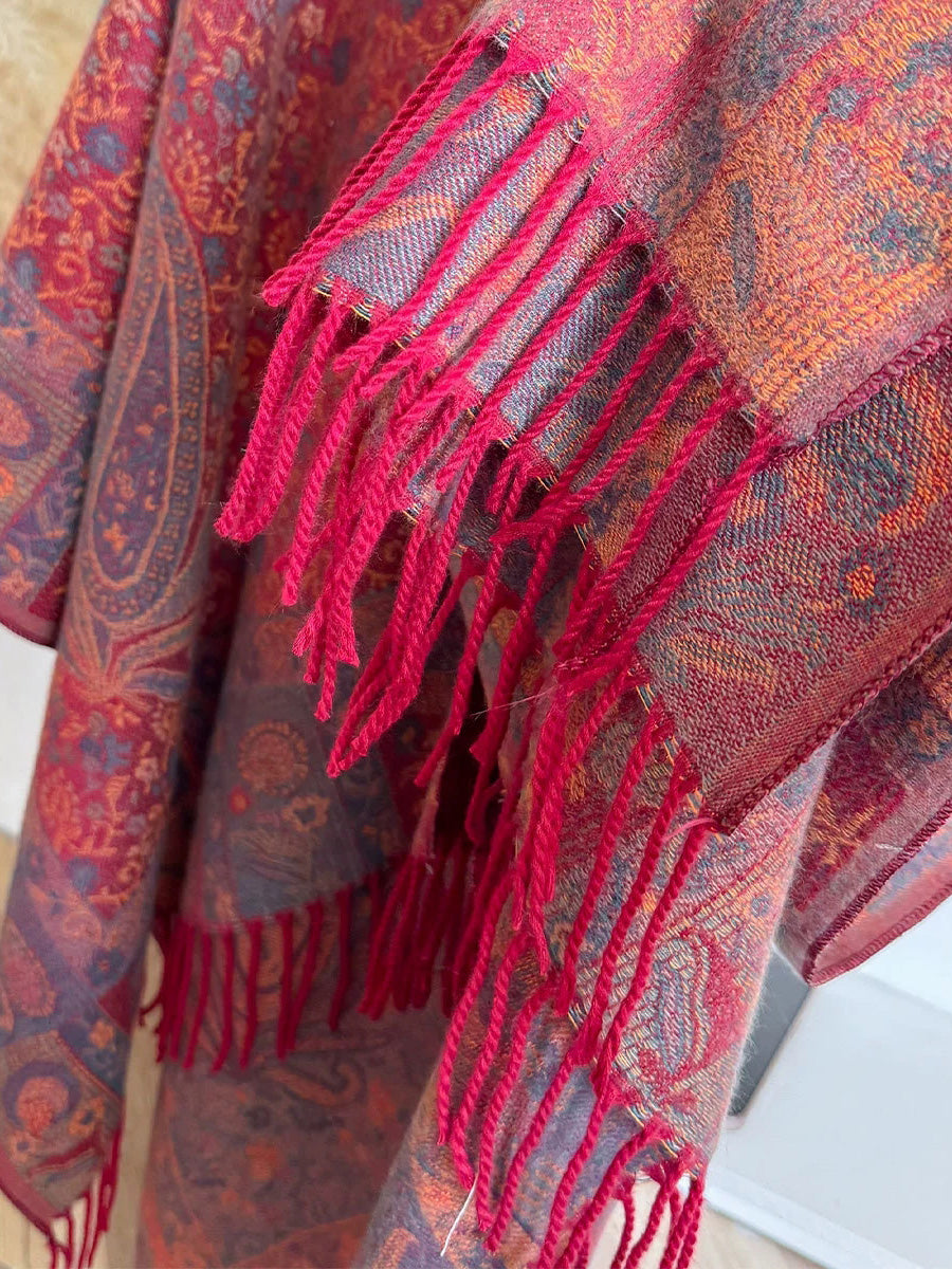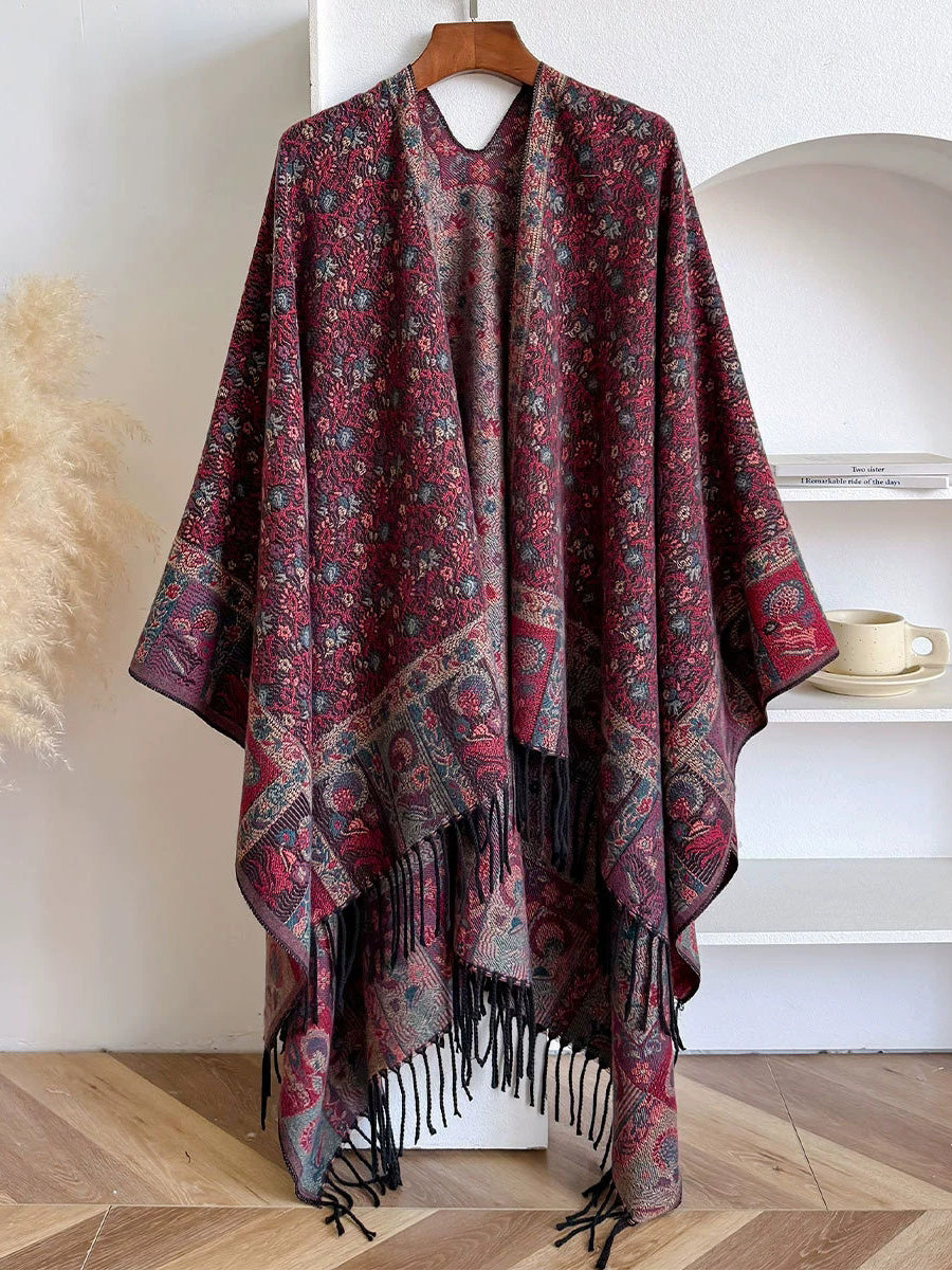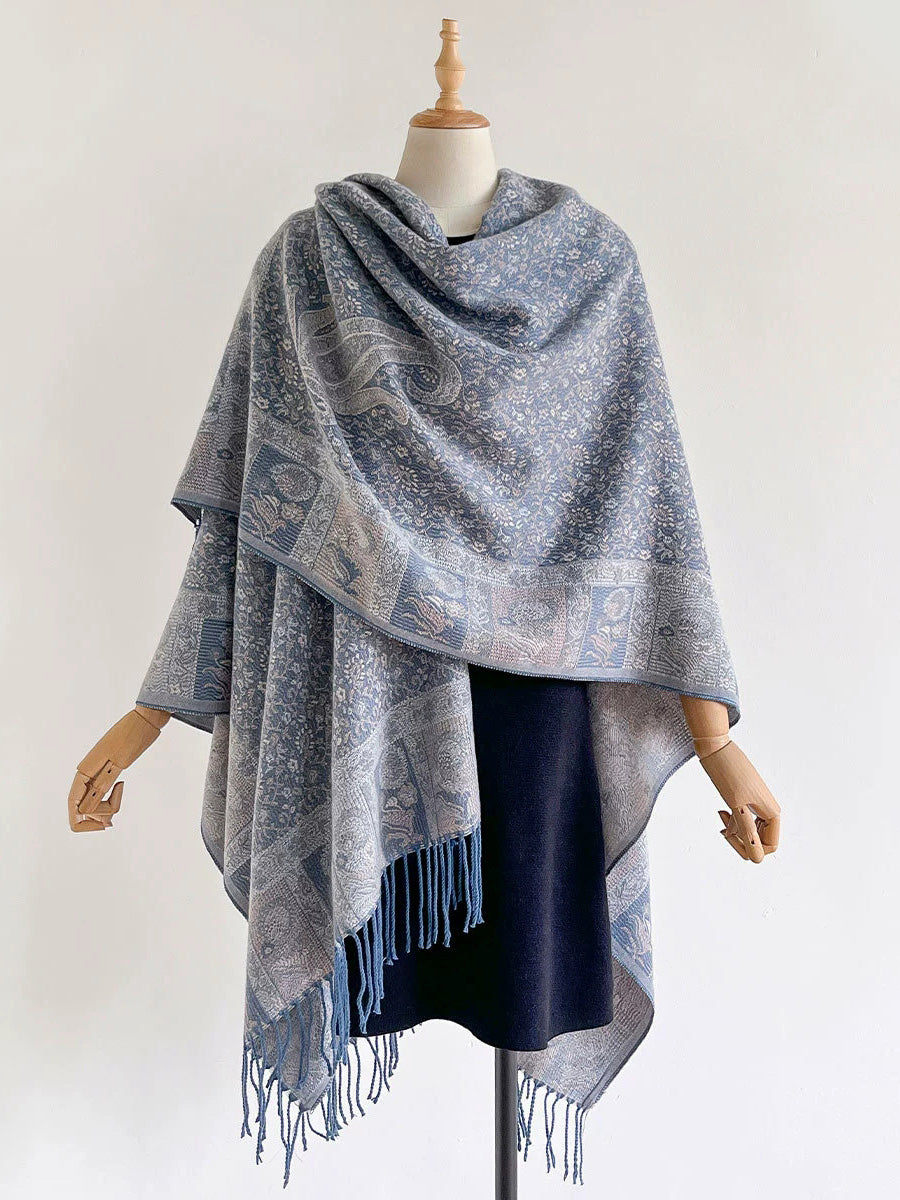 Women Ethnic Floral Jacquard Tassel Shawl Scarf