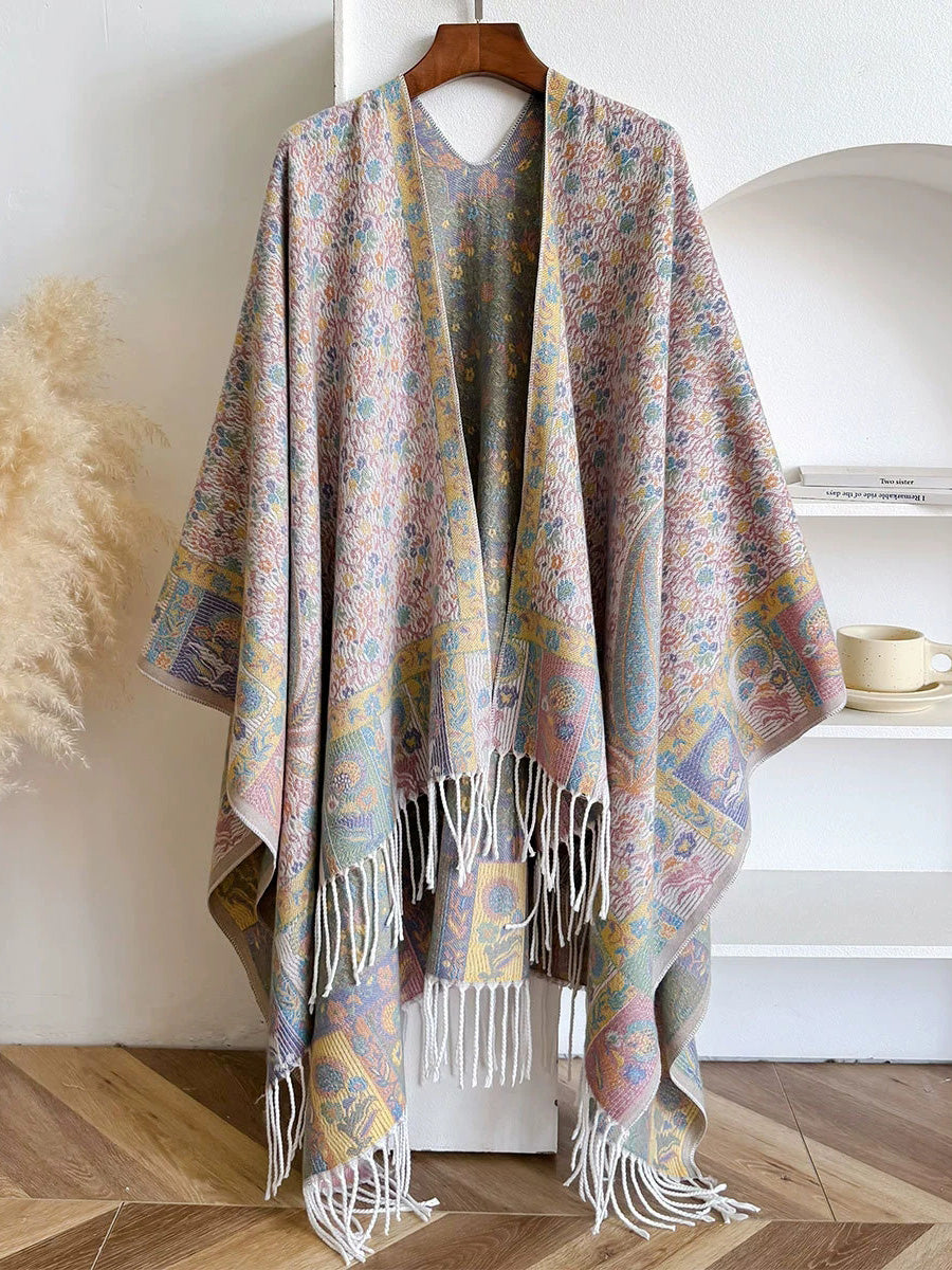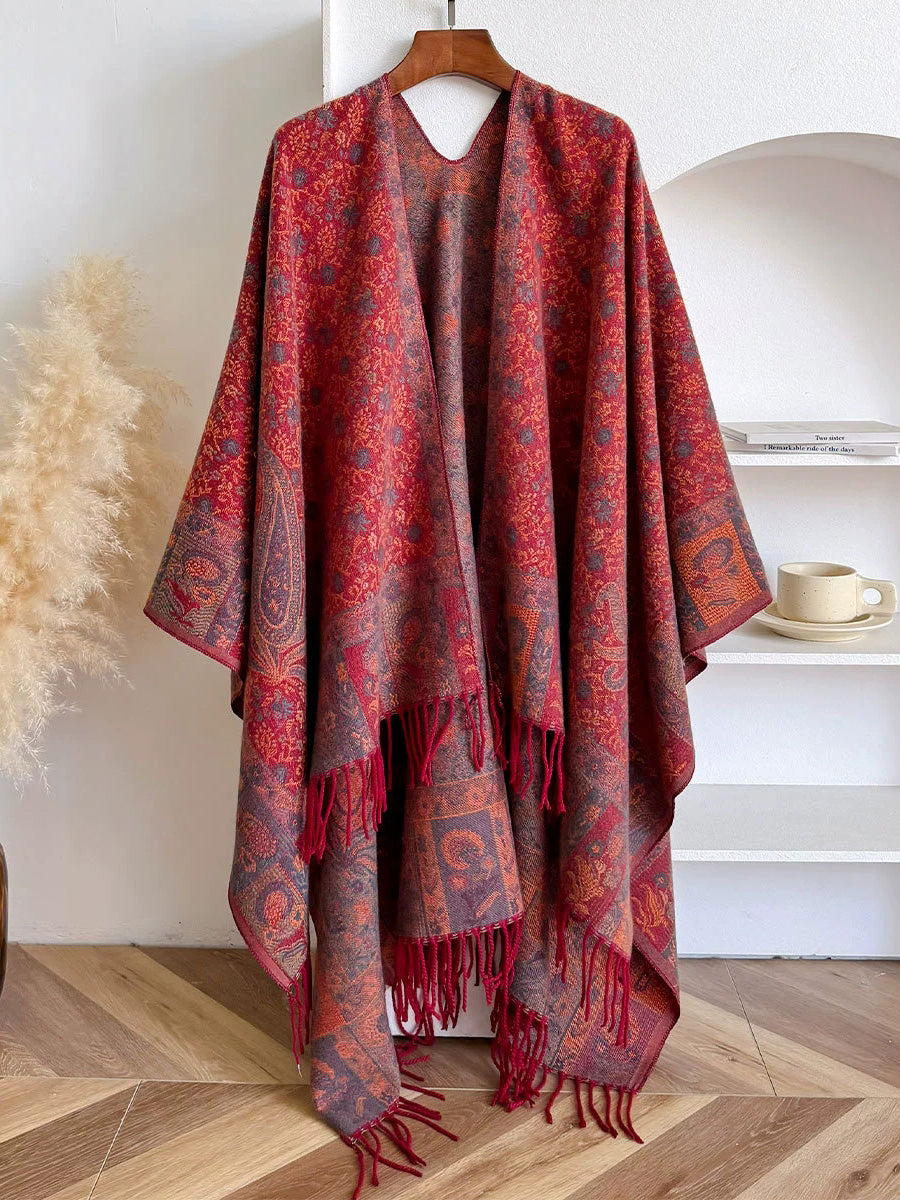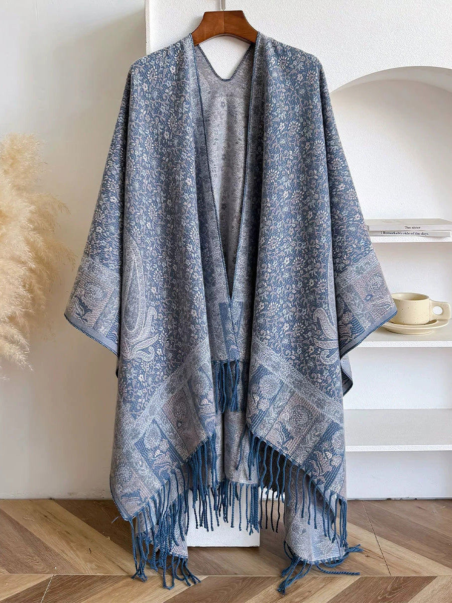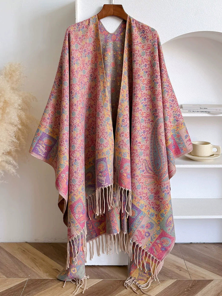 Women Ethnic Floral Jacquard Tassel Shawl Scarf