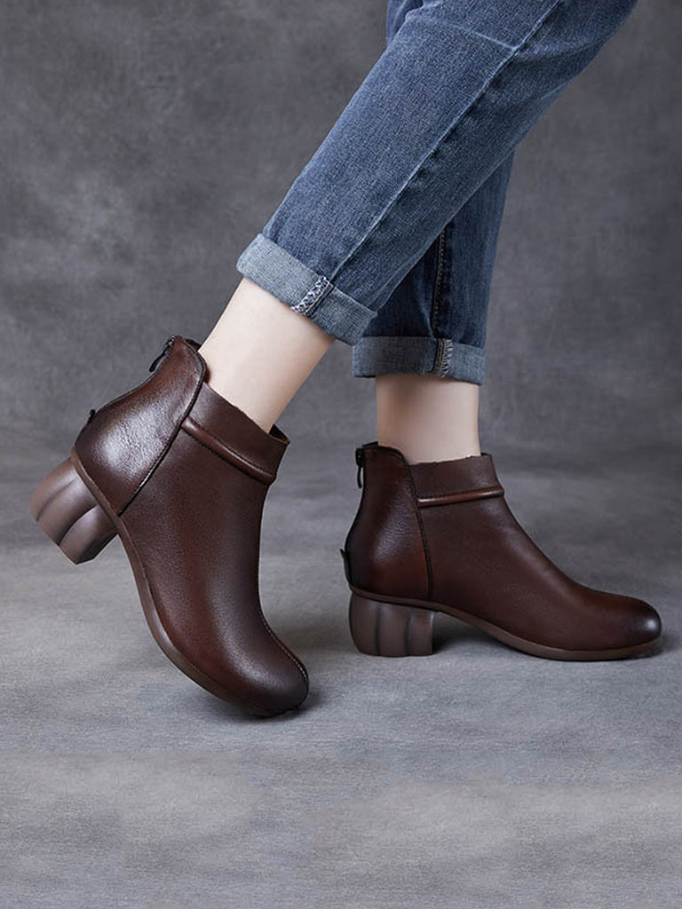 Women Vintage Genuine Leather Mid Heel Ankle Boots