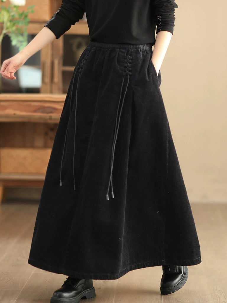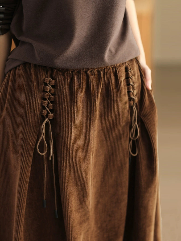 Plus Size Women Autumn Retro Strap Corduroy A-Shape Skirt