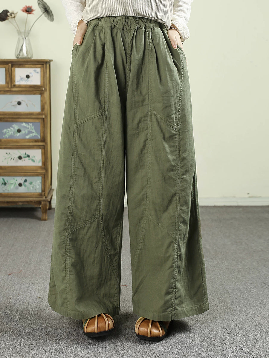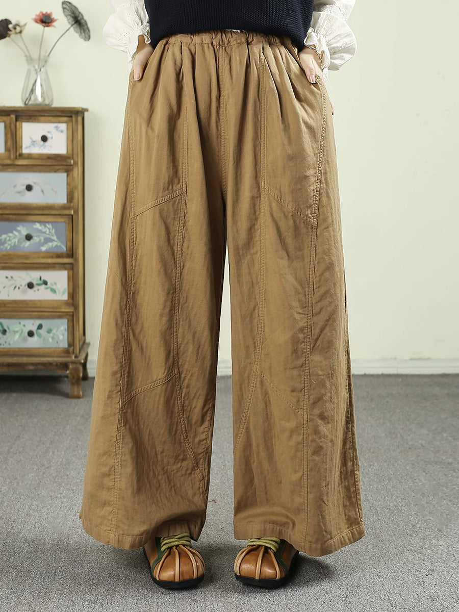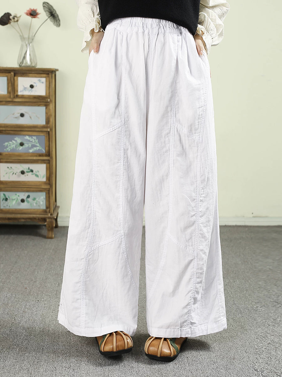 Women Spring Retro 100%Cotton Wide-leg Pants