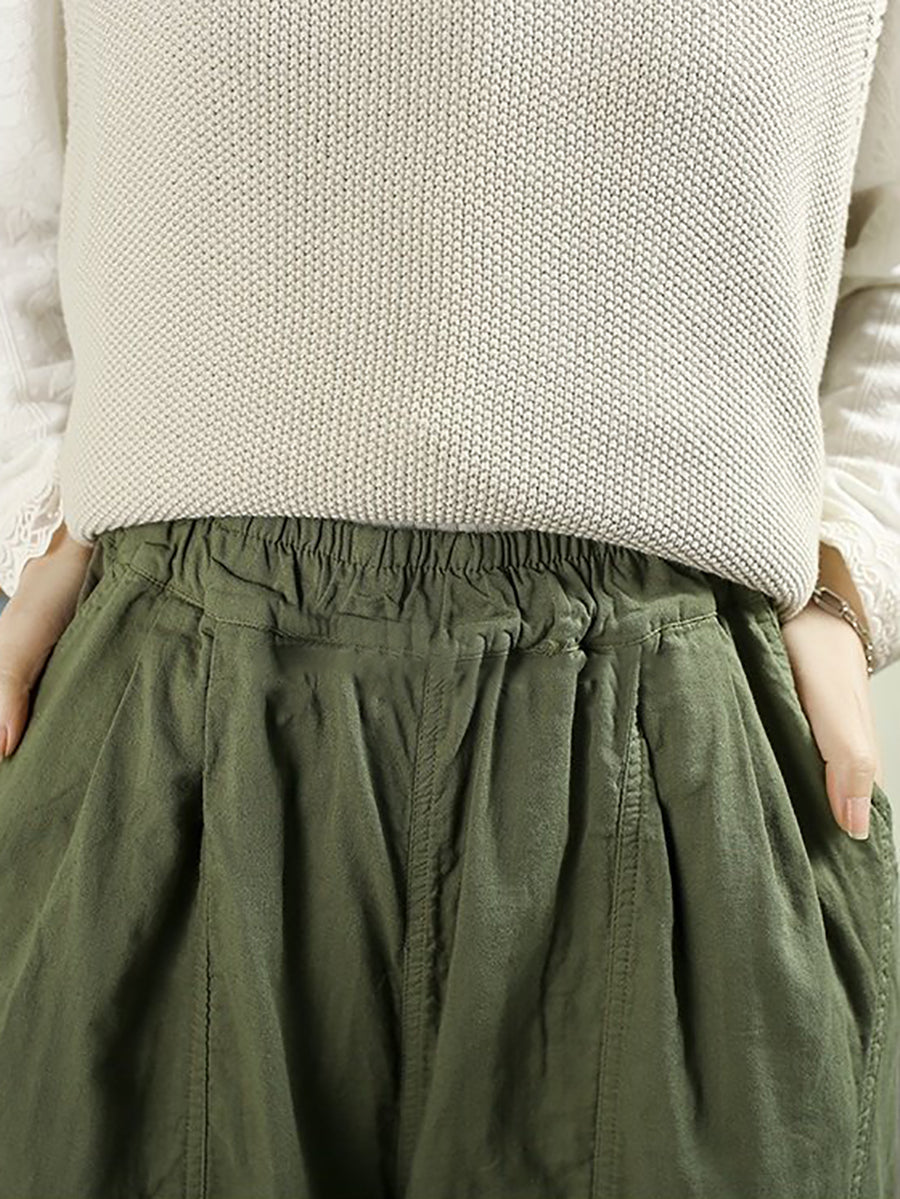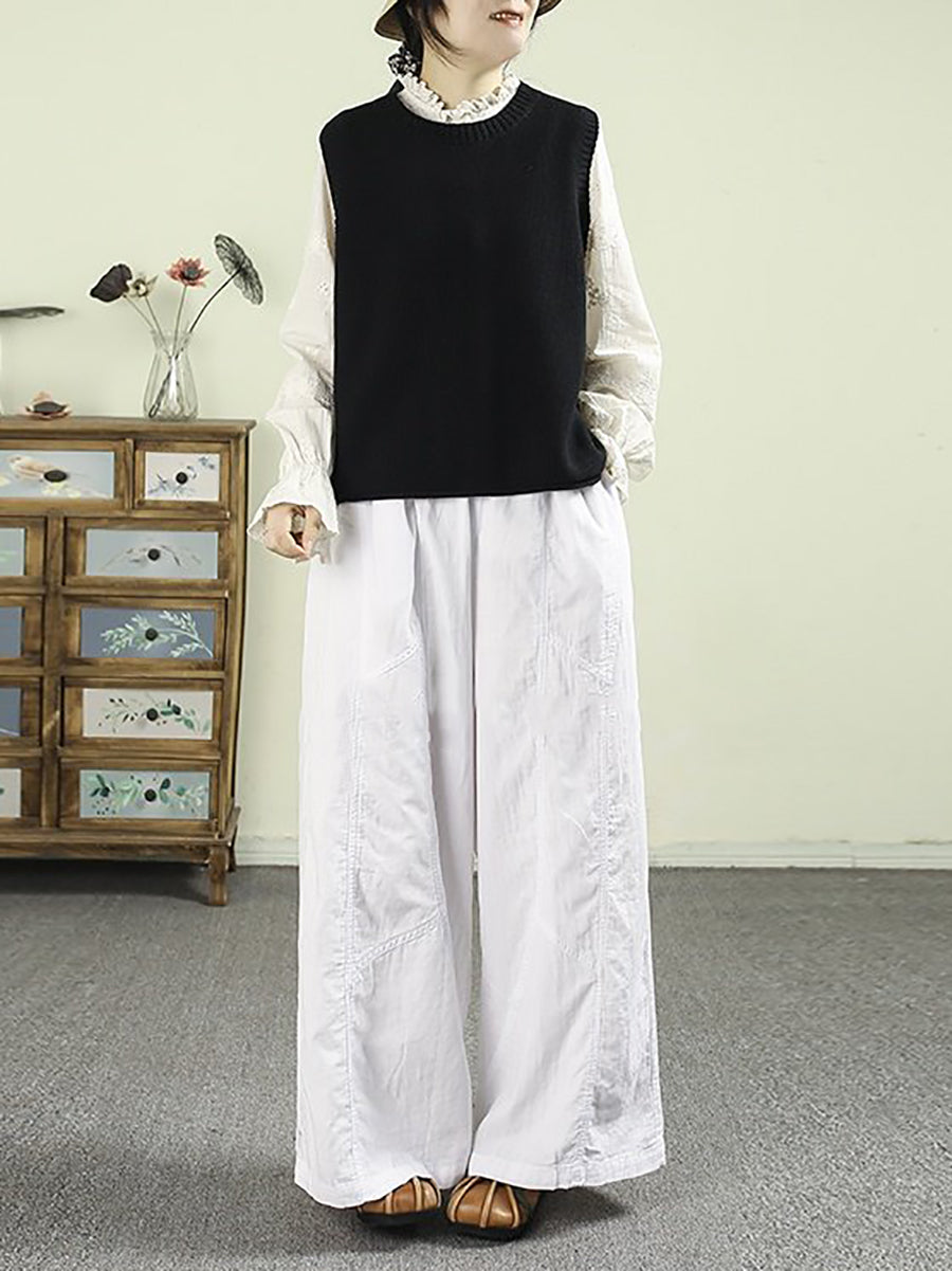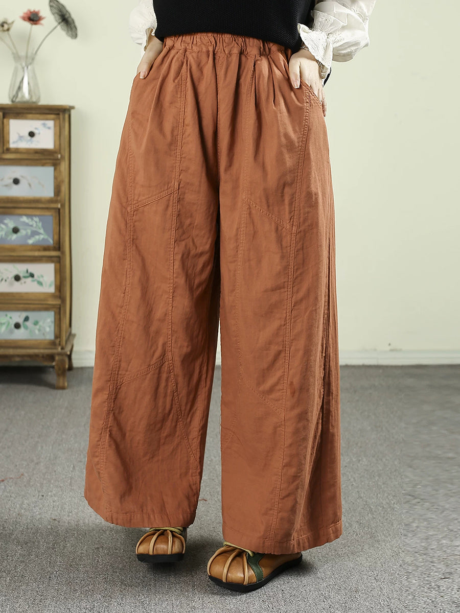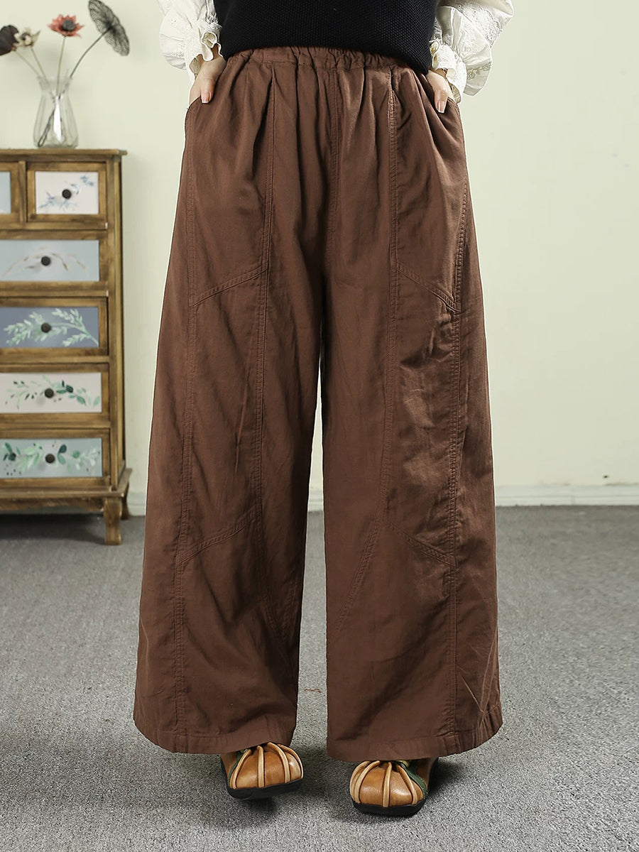 Women Spring Retro 100%Cotton Wide-leg Pants