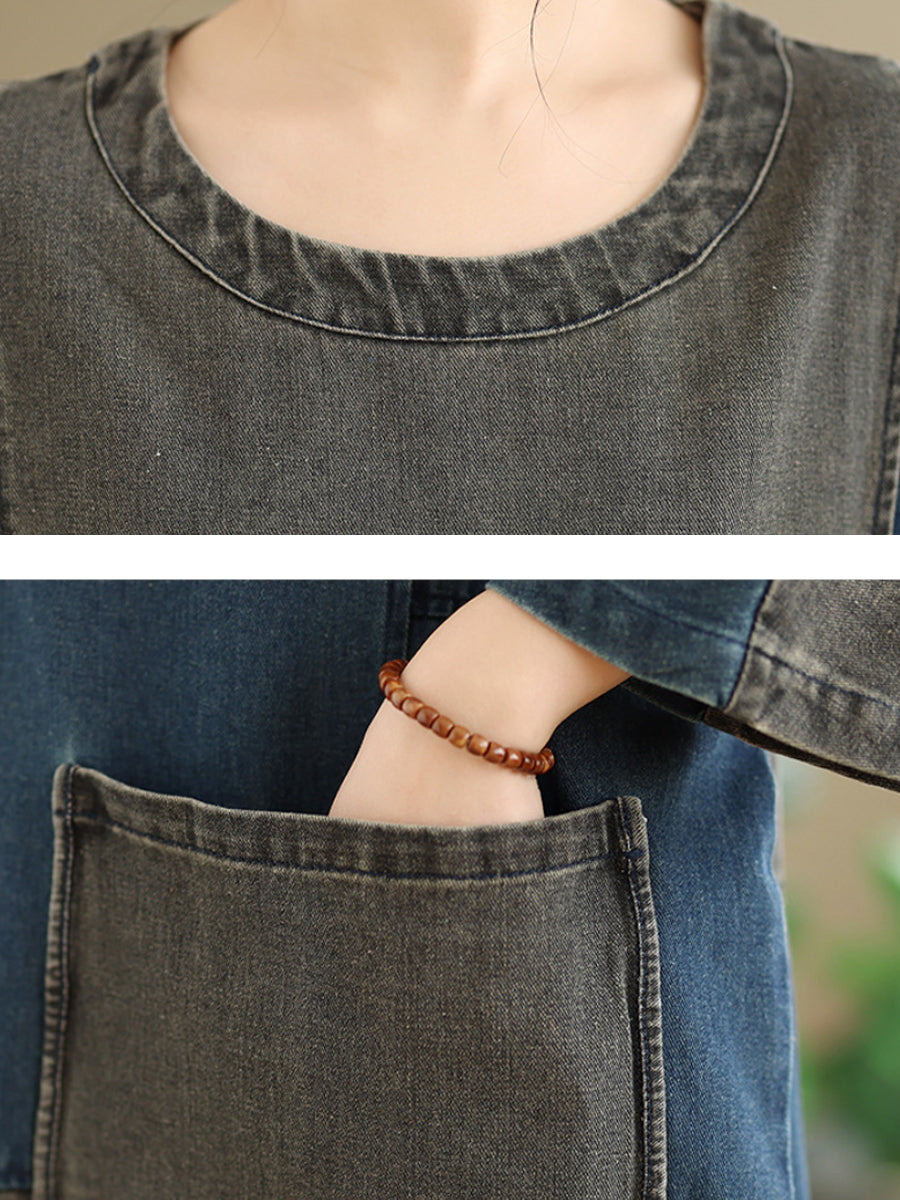 Women Spring Retro Patchwork Denim Dress