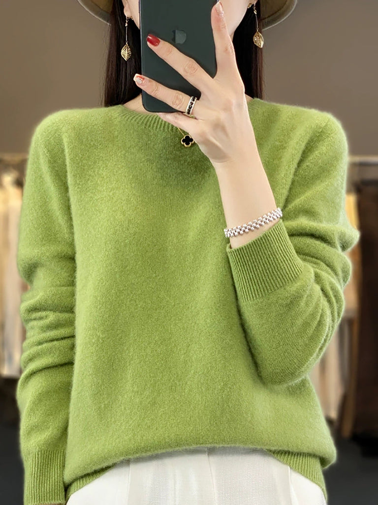 Women Autumn Casual O-Neck Knitted Wool Sweater
