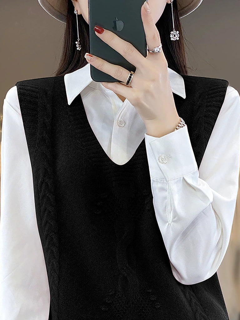Crafted from acrylic, this sleeveless vest features a solid color design with a V-neck collar. Its artistic style makes it ideal for spring and autumn wear.