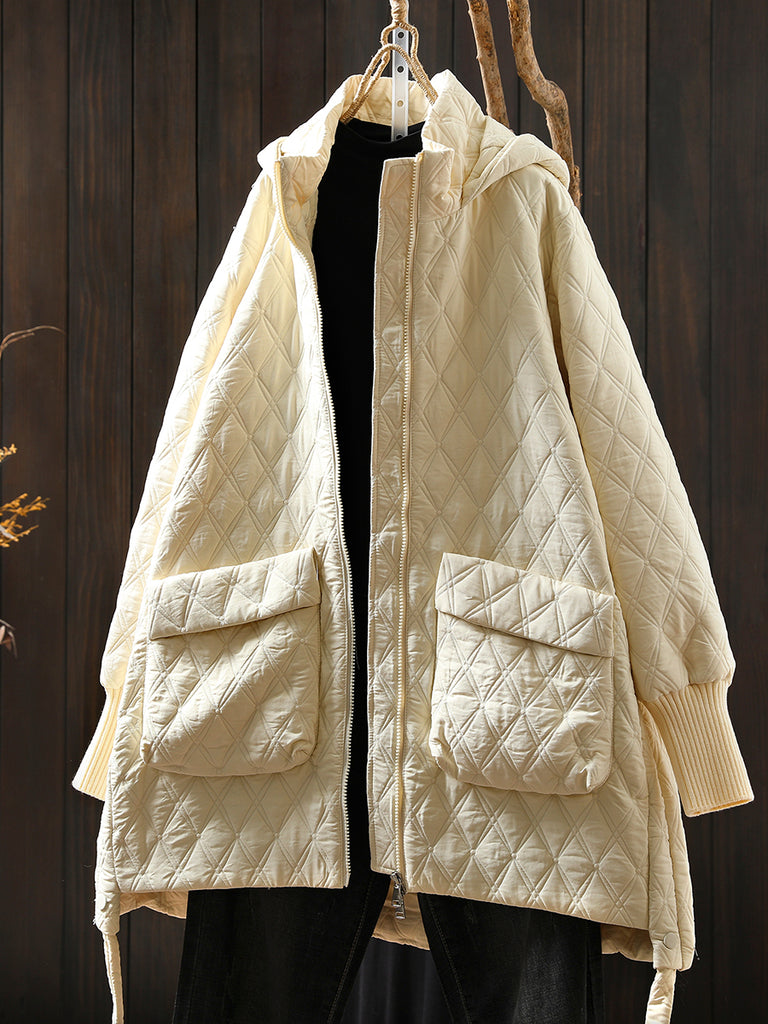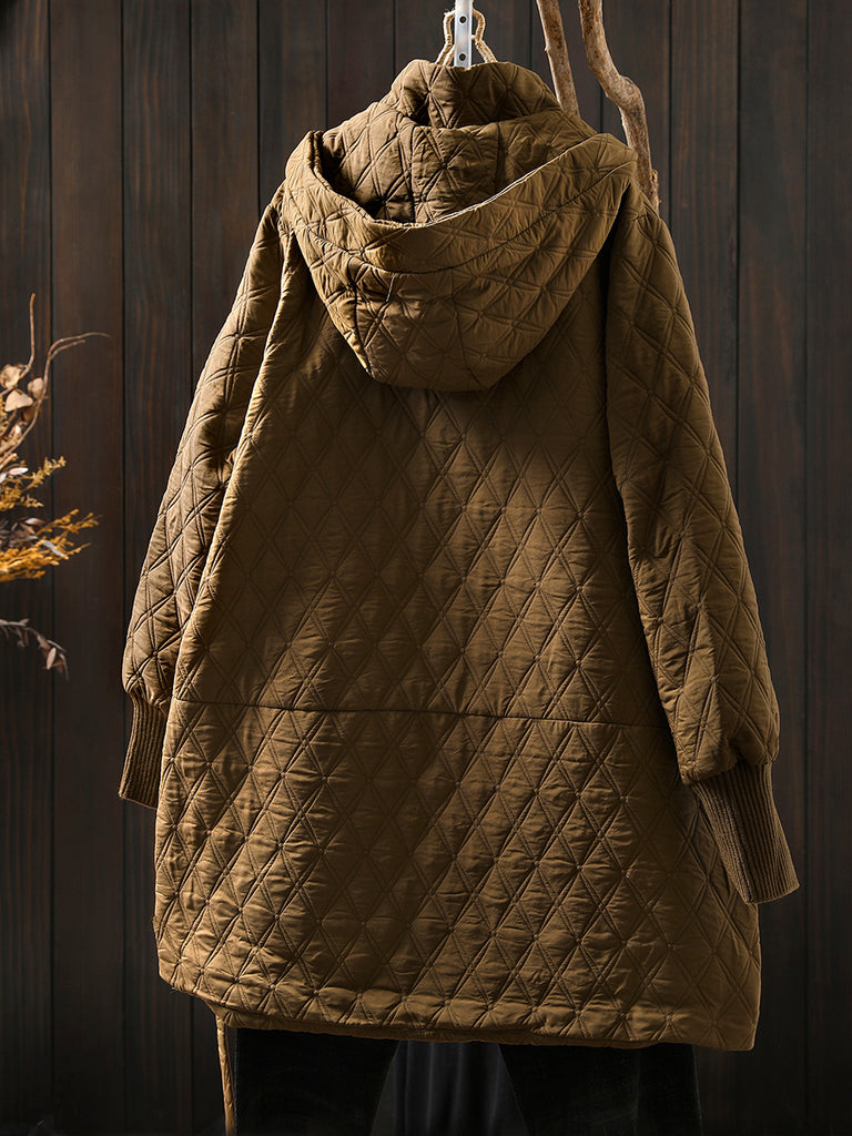 Women Autumn Casual Rhomboids Hooded Cotton Coat